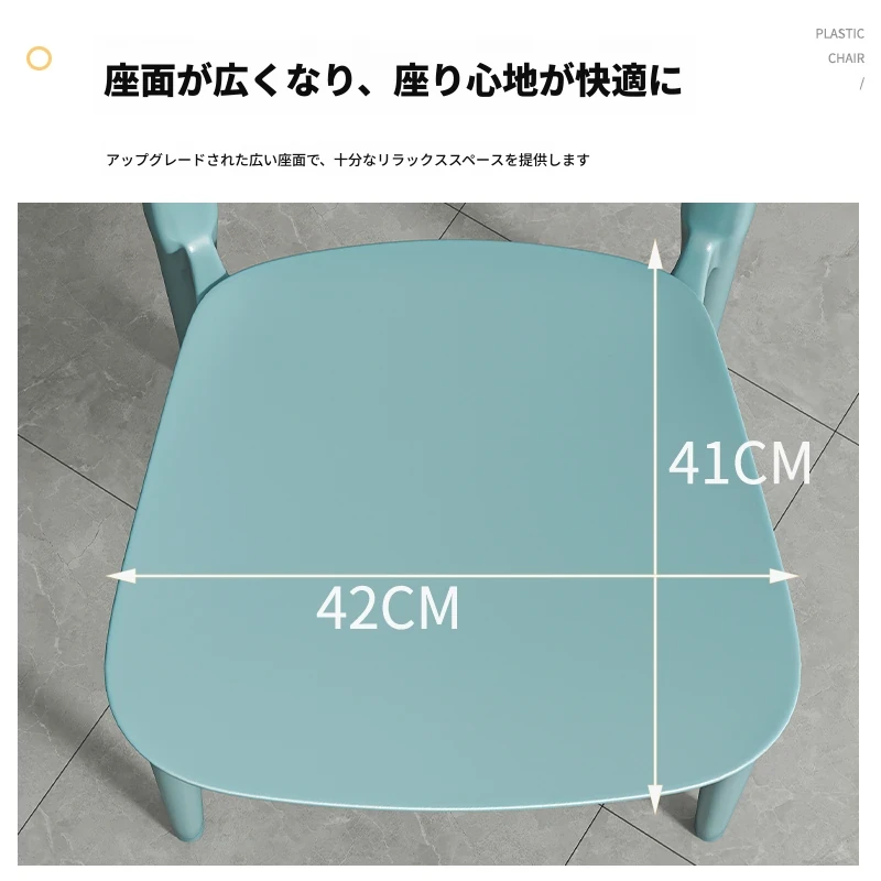 北欧風デザインの厚手プラスチック製ダイニングチェア - シンプルでモダン、人気の商業用レストランにも最適!重ねて収納可能な化粧椅子としても使える多機能チェアです。