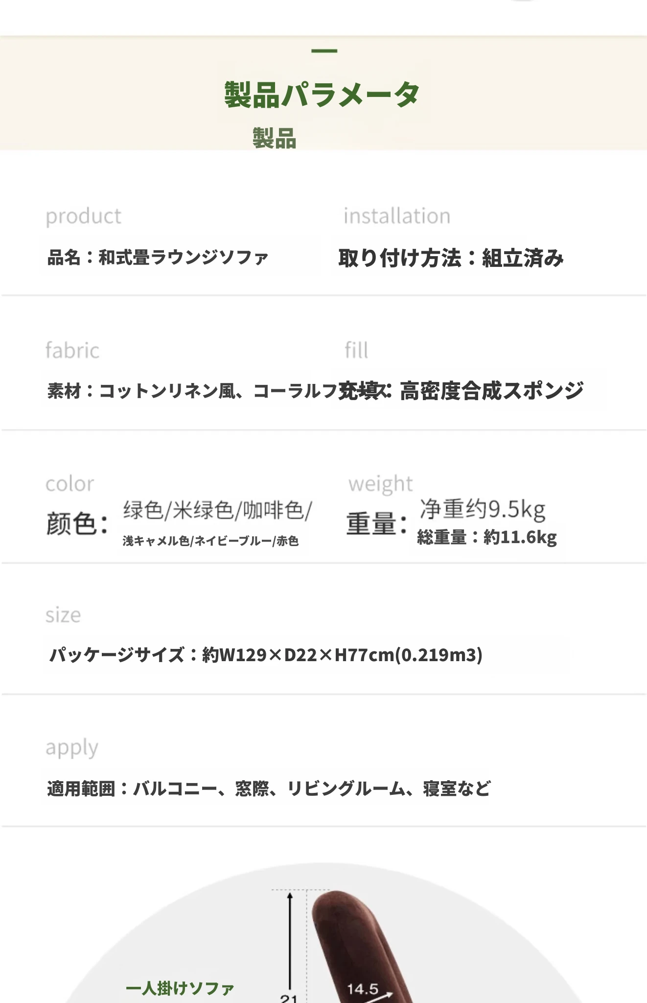 オリジナル日本式リラックスソファー 一人掛け 椅子 バルコニーや窓際に最適なゆったりとしたデザイン ベッドサイドにもぴったり!快適なクッション付きで、くつろぎの時間を提供します。