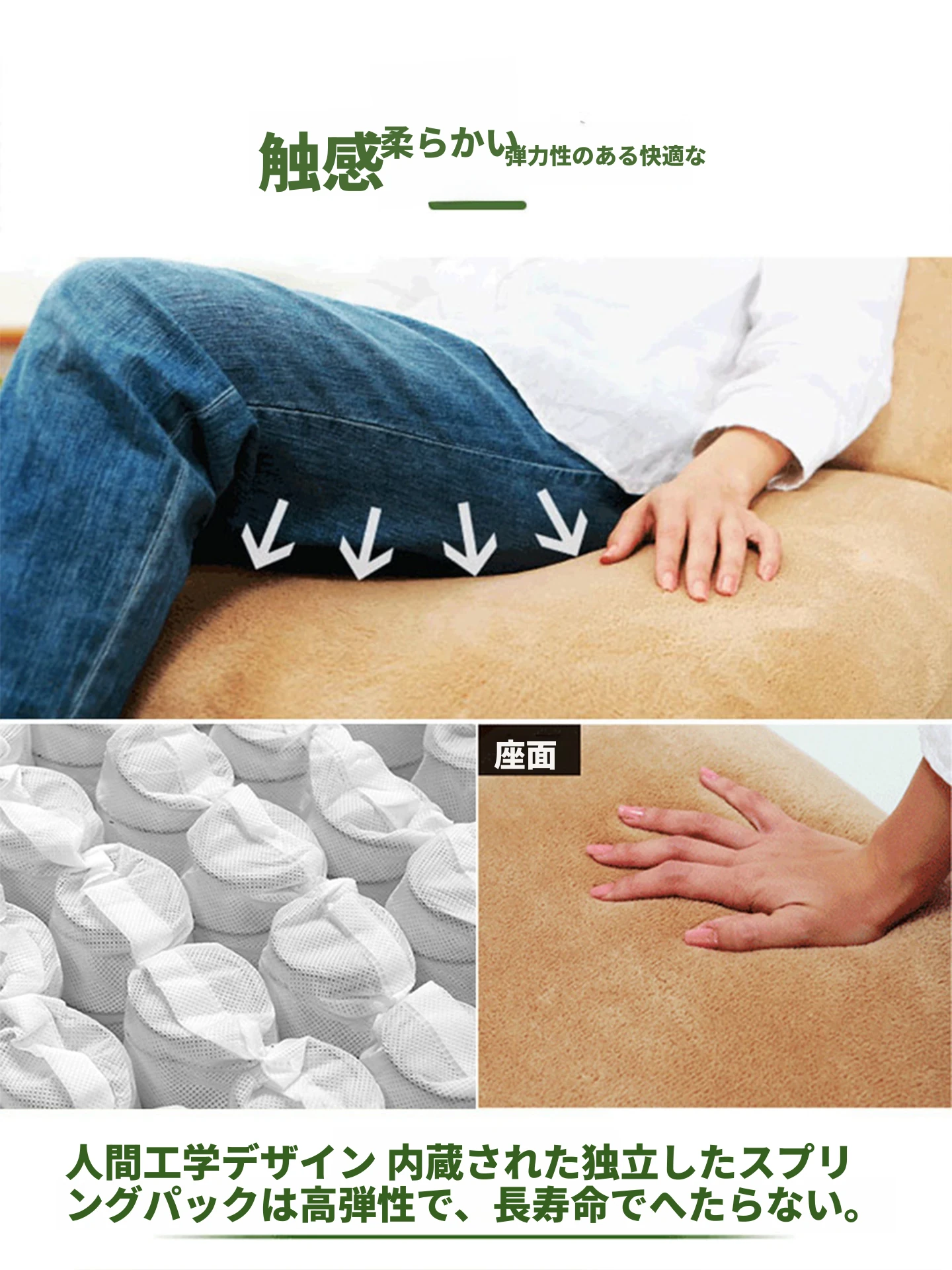 緑色シングルソファ(模倣コットンリネン)+マット