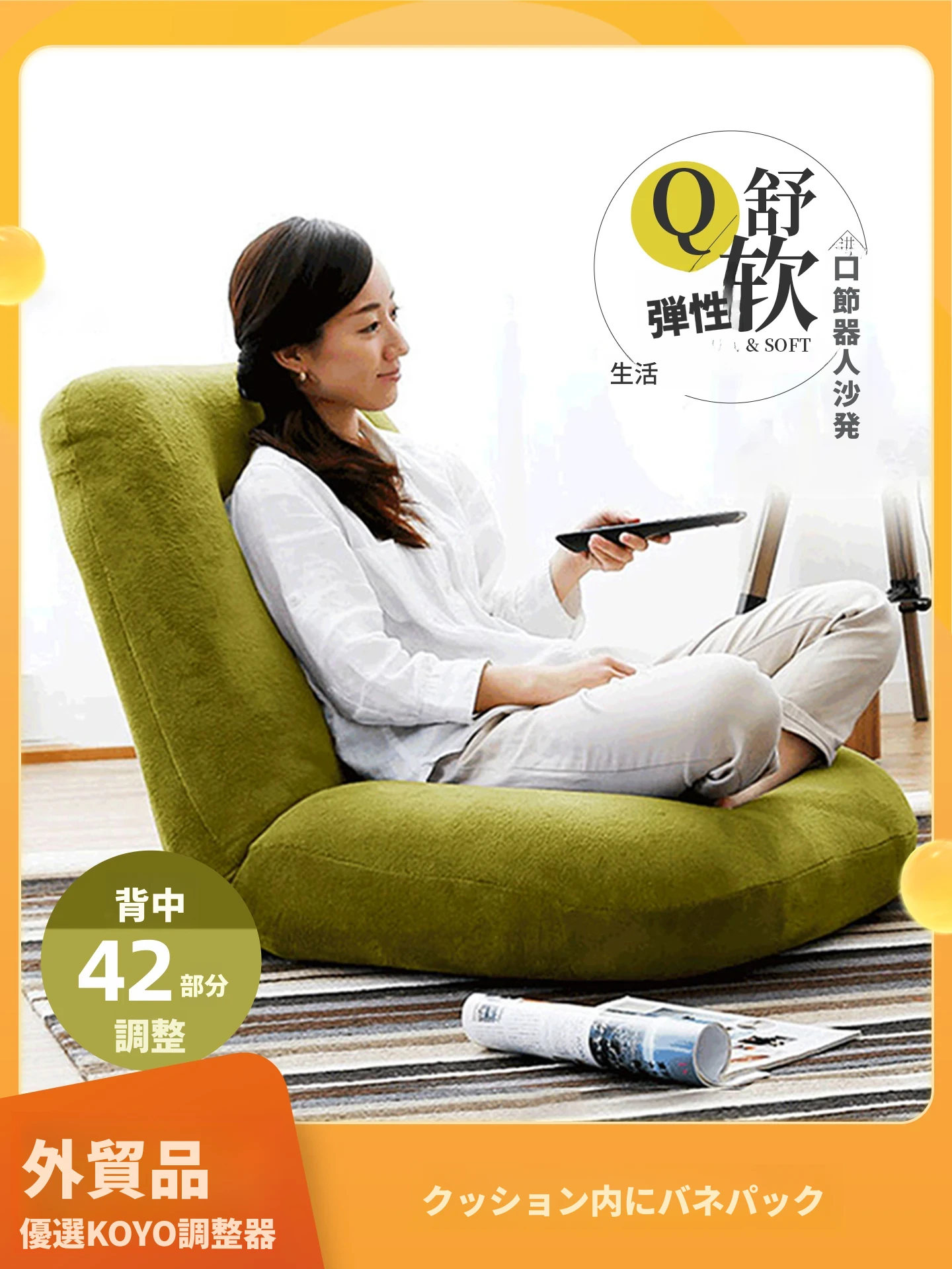 オリジナルのリラックスソファ!一人用、寝室やバルコニーにぴったりのフロアクッション。窓辺や畳の上でも使える折りたたみ式の快適な座椅子で、あなたのくつろぎ空間を演出します!