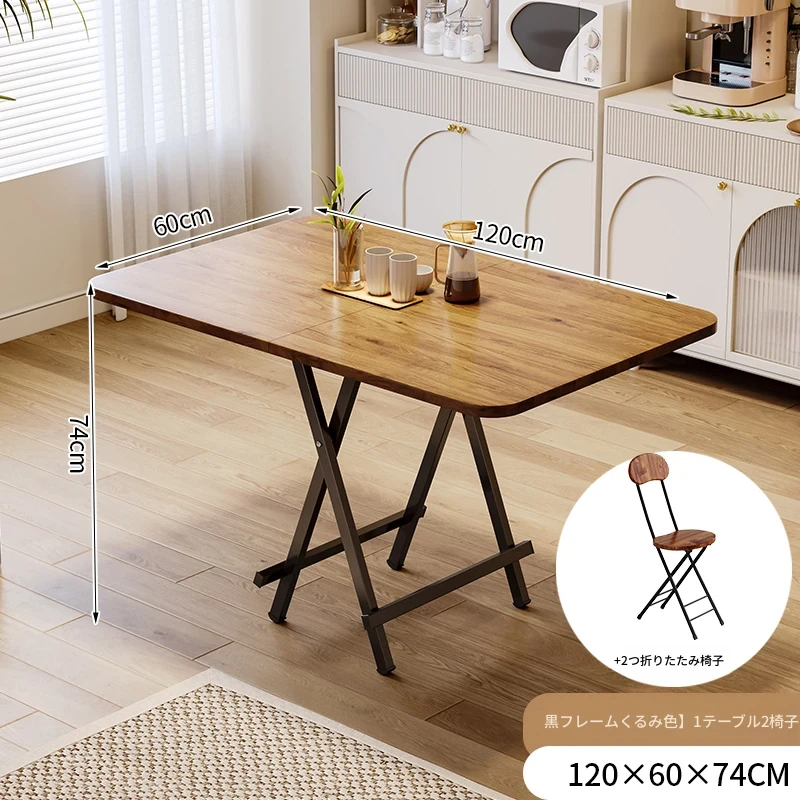 【開けてすぐ使える】120*60ウォールナット+2脚折りたたみ椅子 在庫即発送