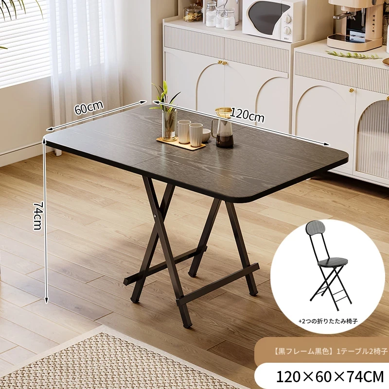 【開けてすぐ使える】120*60ブラック+2脚折りたたみ椅子 在庫即発送