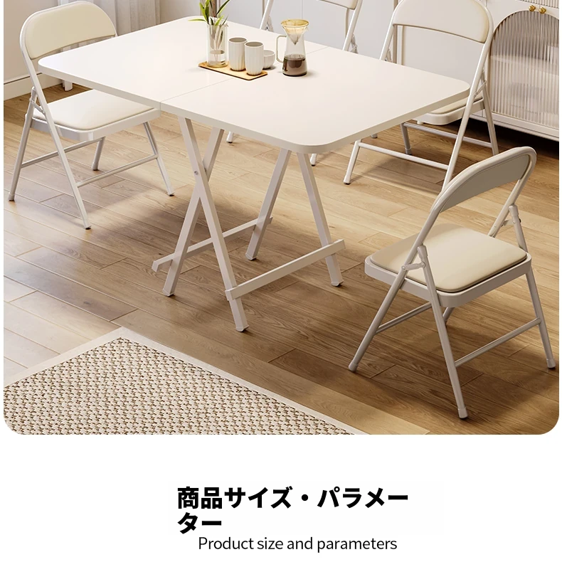 【開けてすぐ使える】120*60ホワイト+2脚折りたたみ椅子 在庫即発送