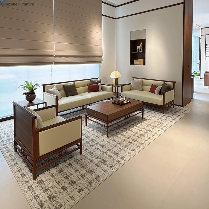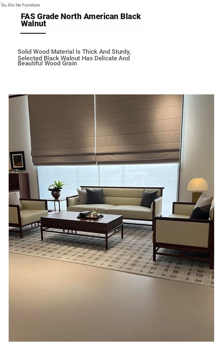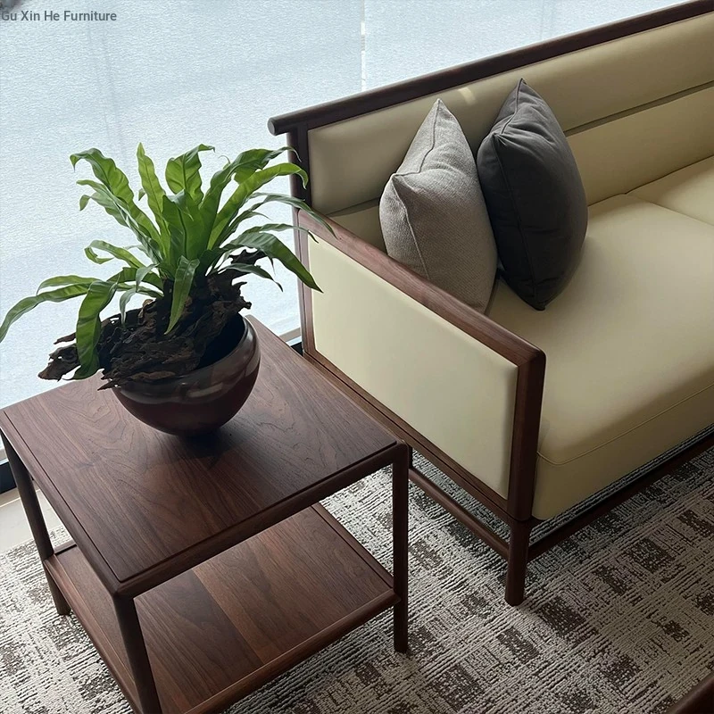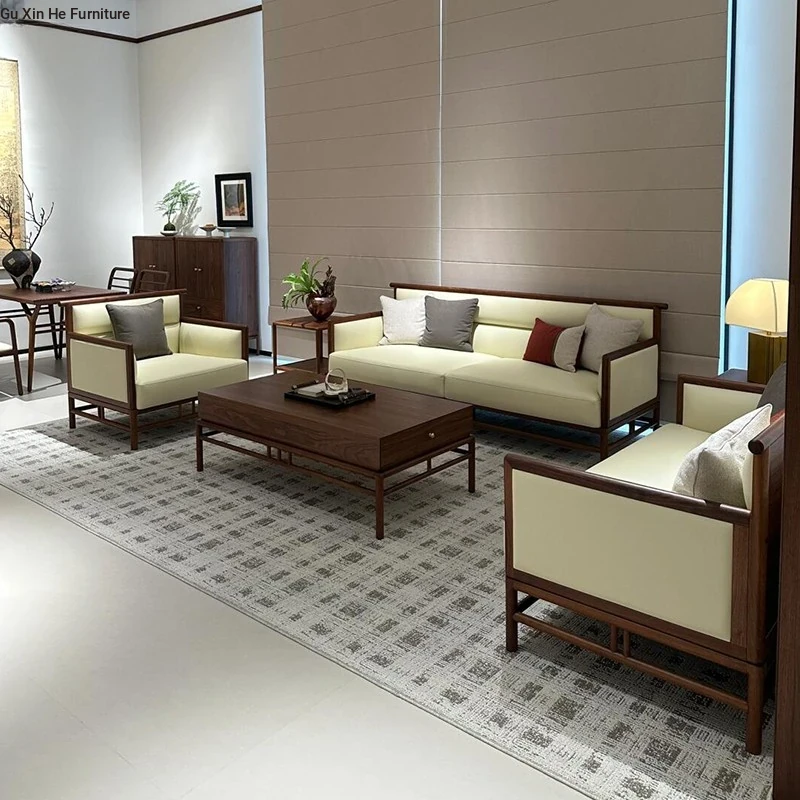 Premium Minimalist Solid Wood Sofa in North American Black Walnut - Ideal for Spacious Offices and Modern Living Spaces - Perfect Fusion of New Chinese Style and Luxurious Comfort