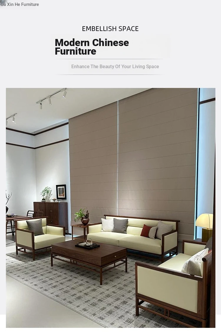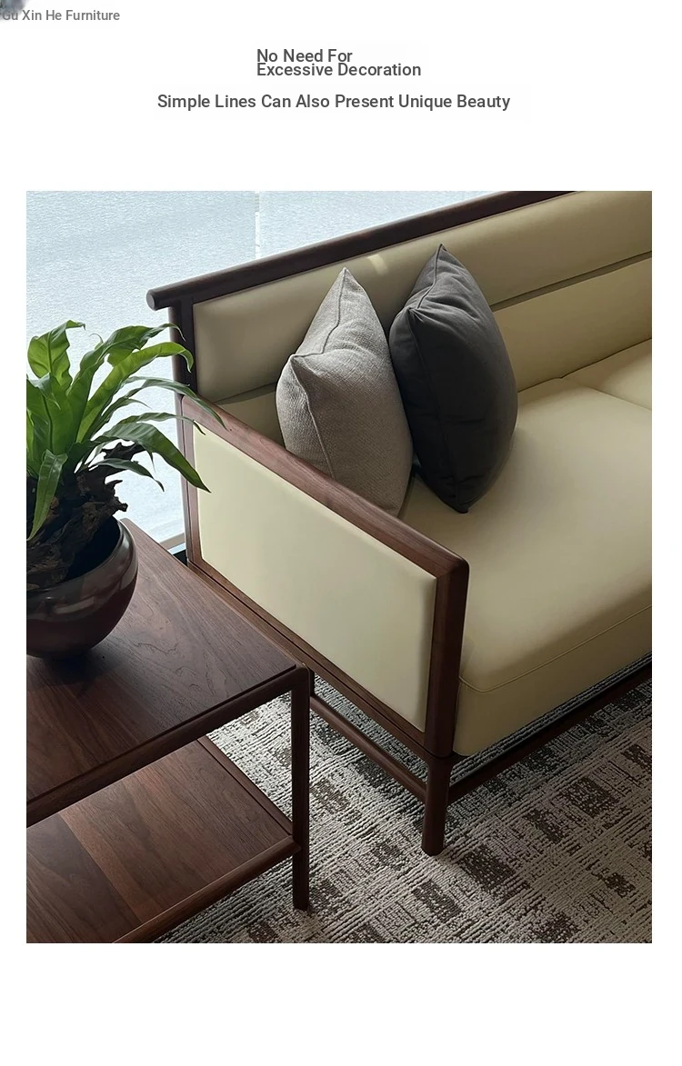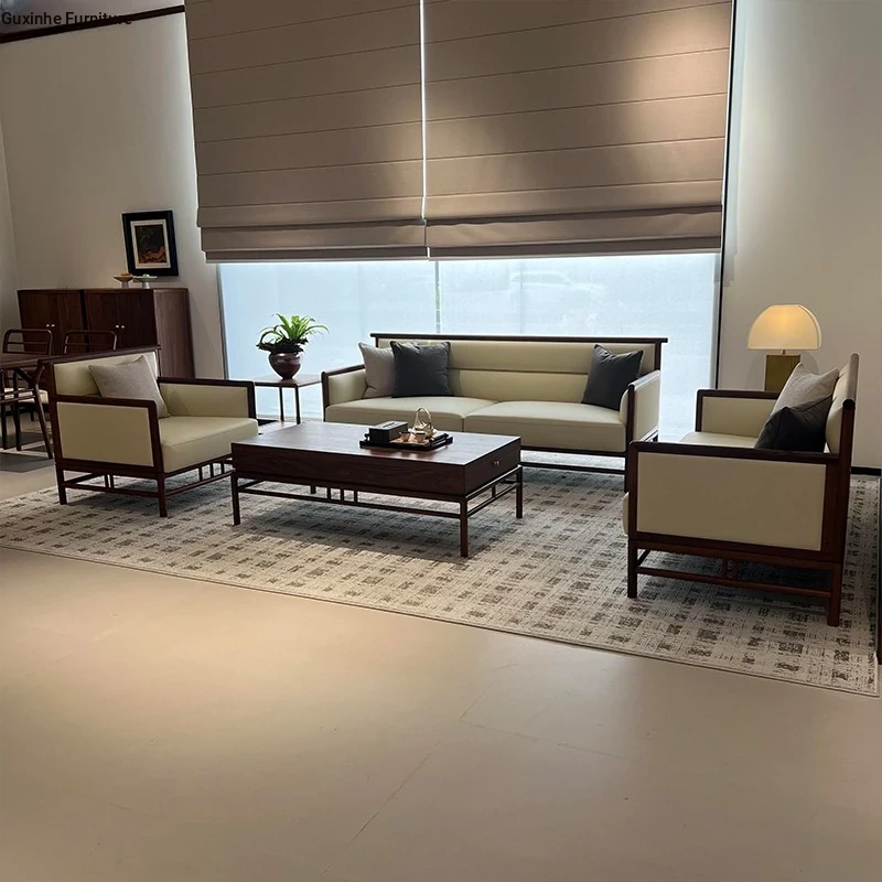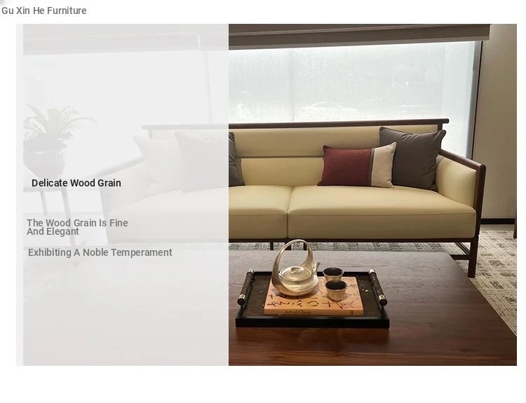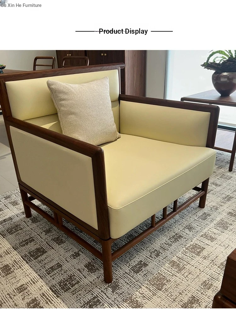 Premium Minimalist Solid Wood Sofa in North American Black Walnut - Ideal for Spacious Offices and Modern Living Spaces - Perfect Fusion of New Chinese Style and Luxurious Comfort