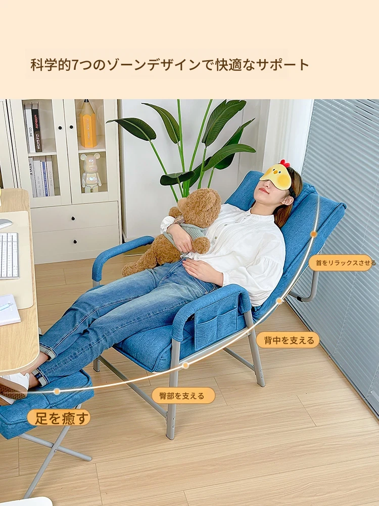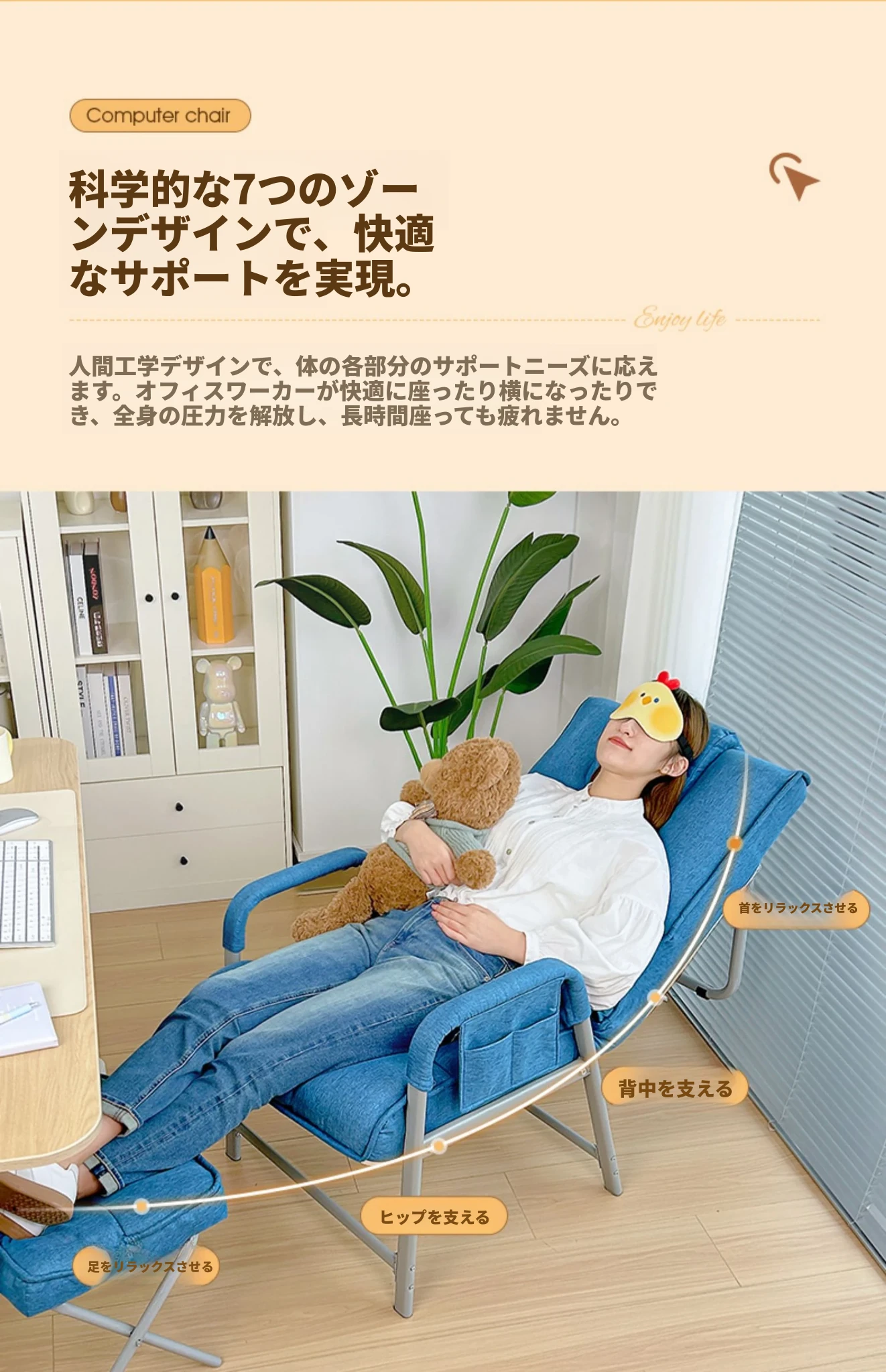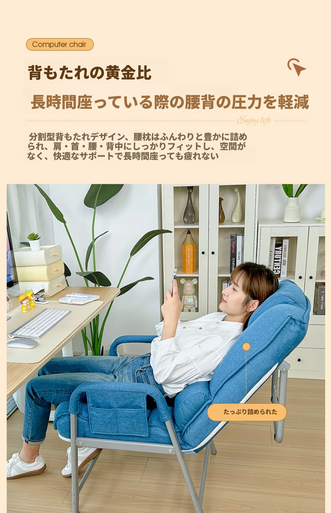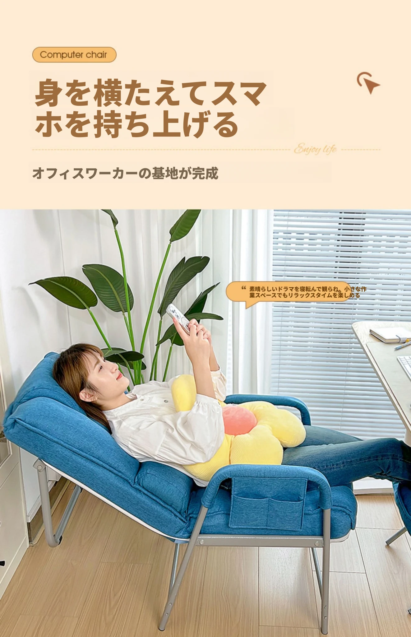 リラックスできるリクライニングソファチェア!家庭用、寝室や学生寮、バルコニーに最適な一人用椅子。座っても寝てもOK!快適なひとときを提供します。