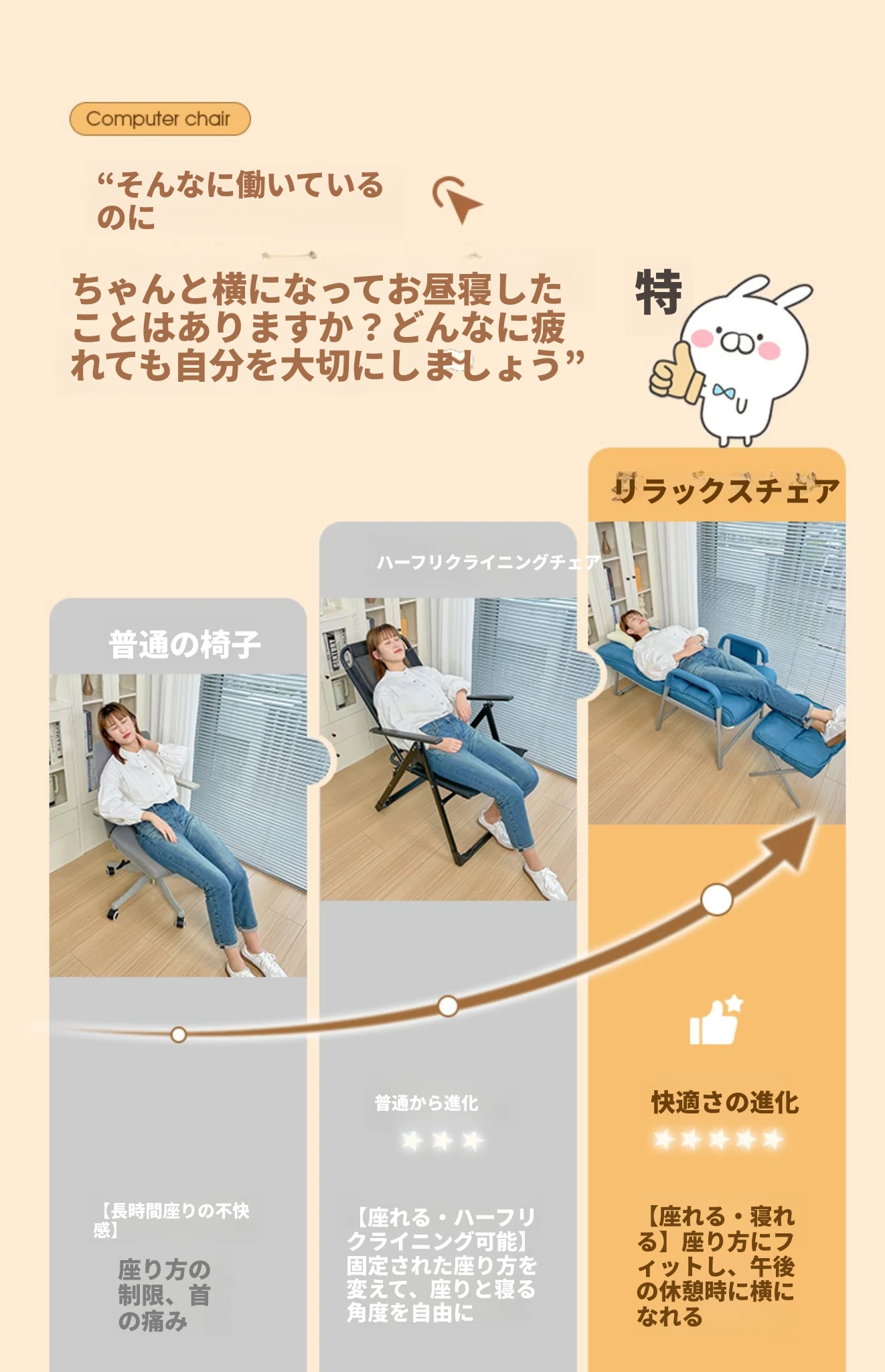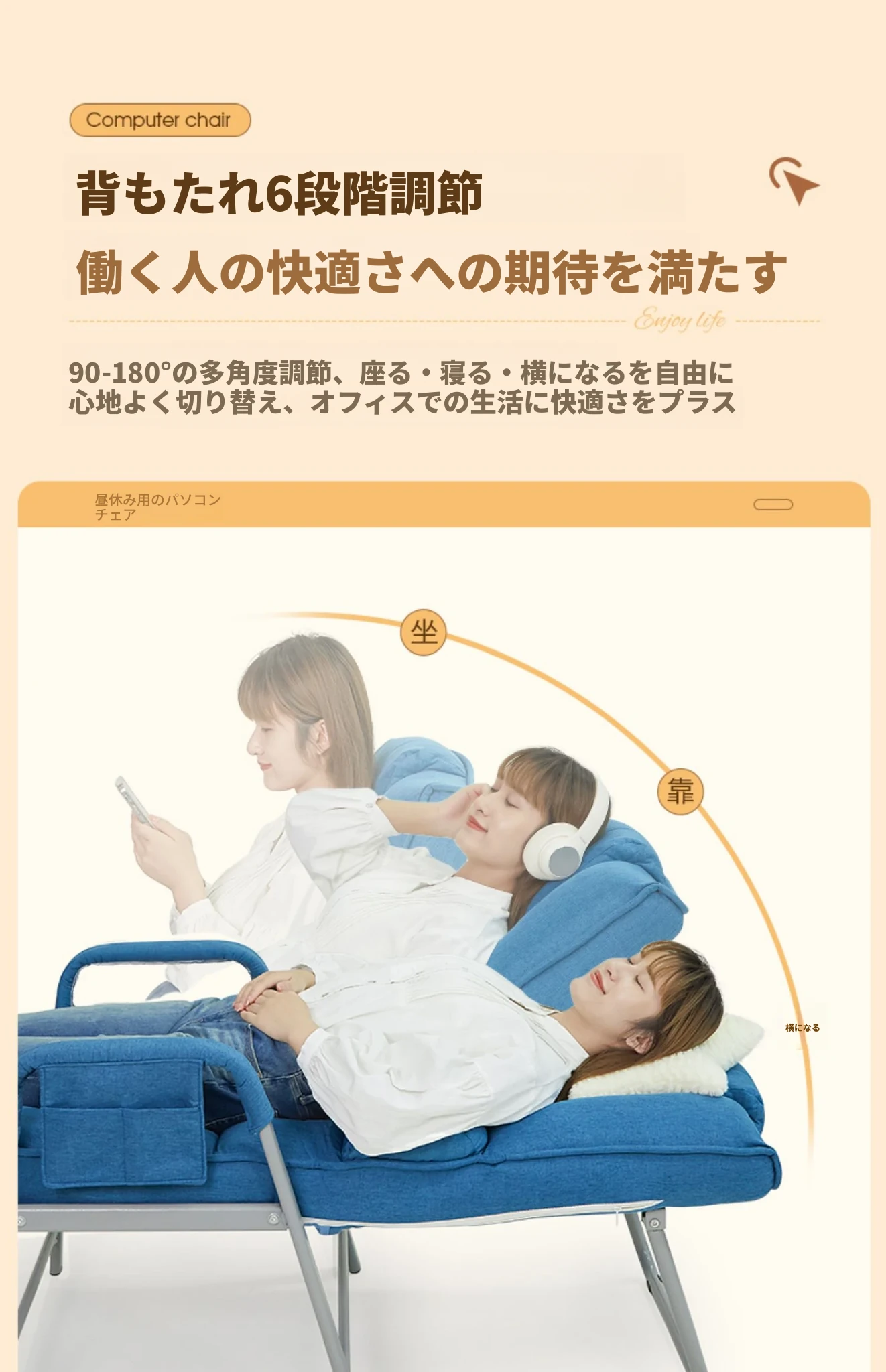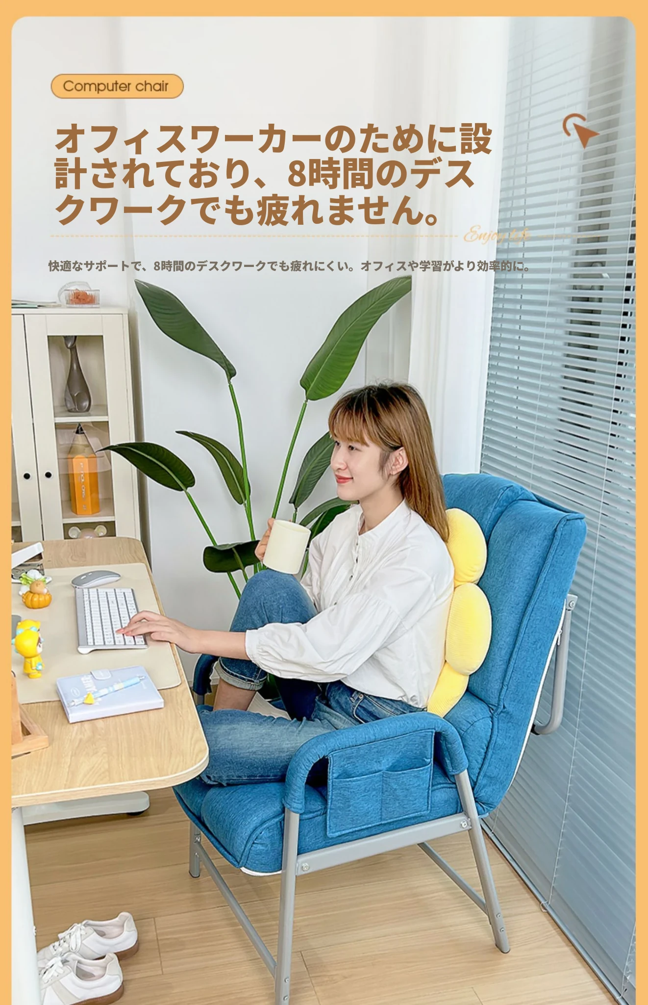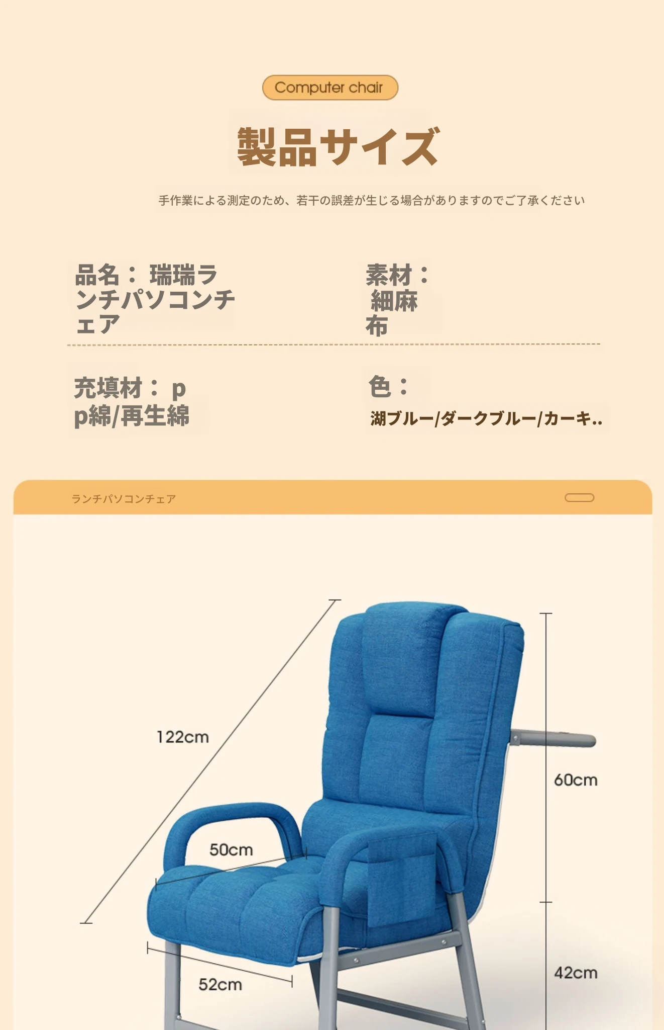 リラックスできるリクライニングソファチェア!家庭用、寝室や学生寮、バルコニーに最適な一人用椅子。座っても寝てもOK!快適なひとときを提供します。