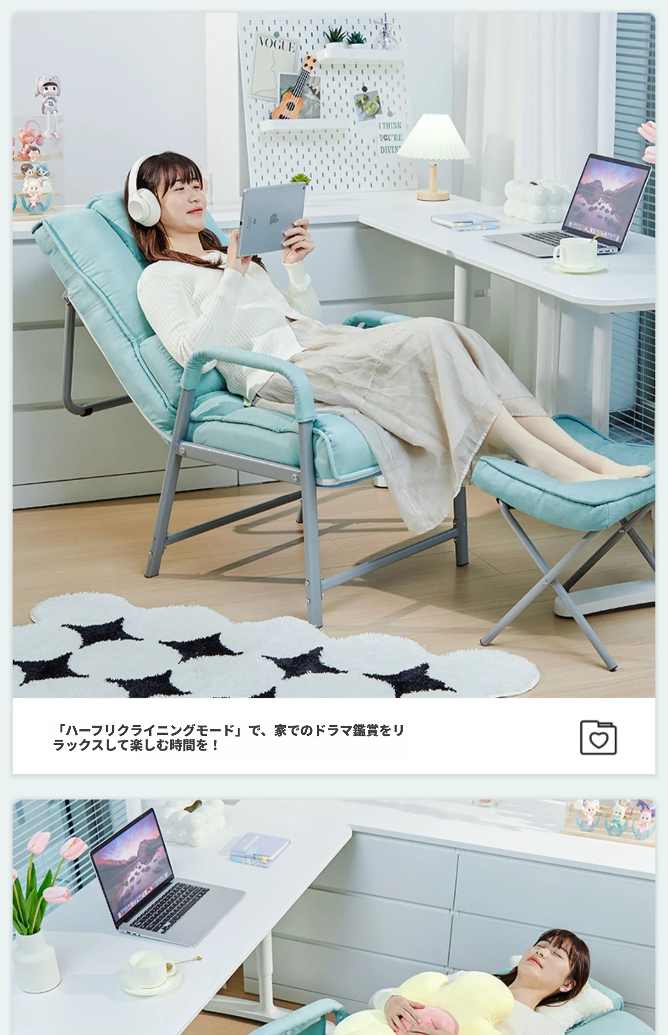 リクライニング可能な快適な一人用ソファチェア - 自宅や書斎、ゲーミングに最適!長時間の座り心地を追求したデザイン、寛ぎのひとときをお楽しみください。