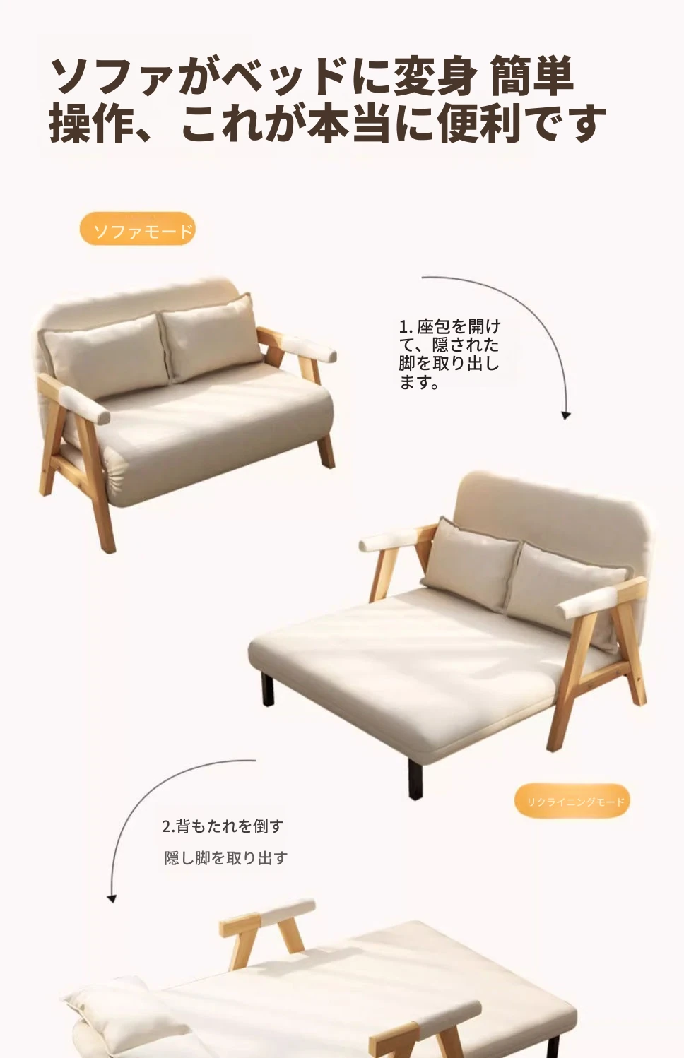 盛世锦尚折りたたみ2WAYソファベッド - 小スペースにぴったり!リラックスできる折りたたみソファベッド、リビングに最適な伸縮式デザイン。快適な眠りとくつろぎを手に入れましょう!