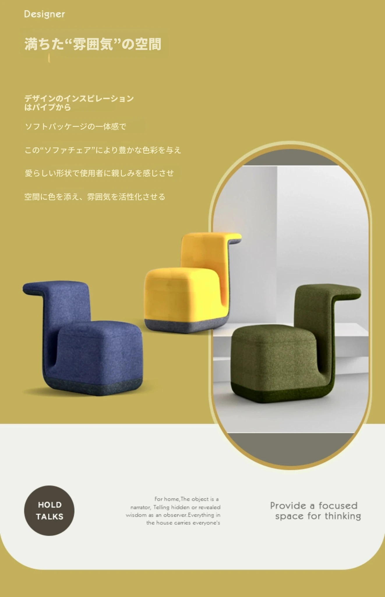 一人用リラックスソファ|トレンド感満載の軽奢スタイル|家庭用・公共スペースに最適|ユニークなパイプデザインのサロンチェア|居心地抜群のリラックス空間を演出!