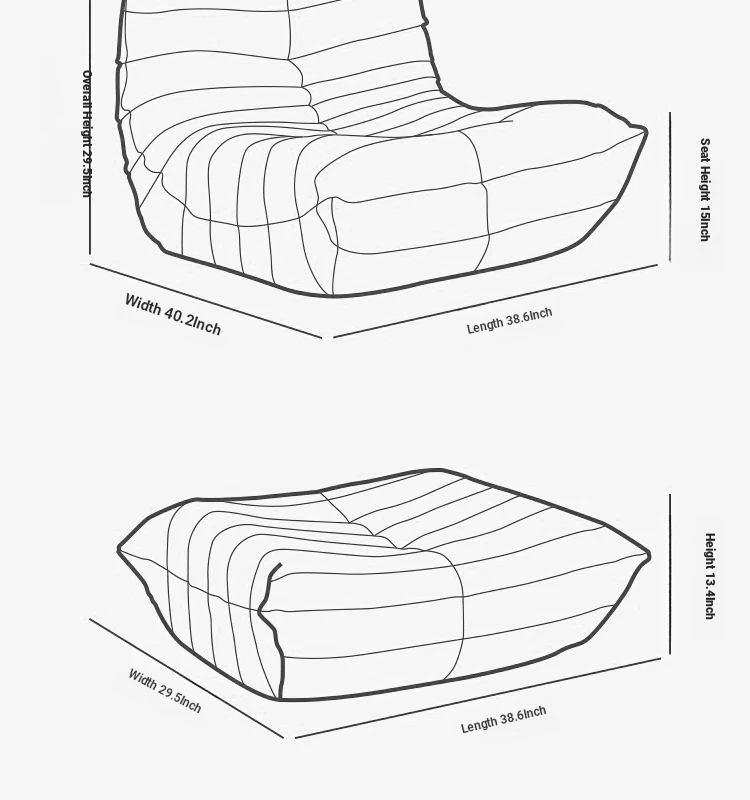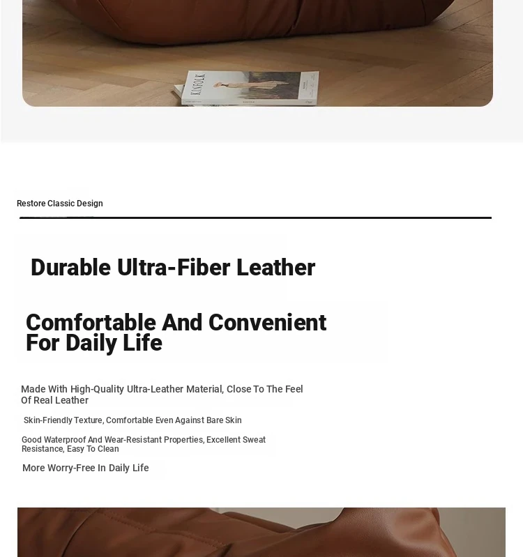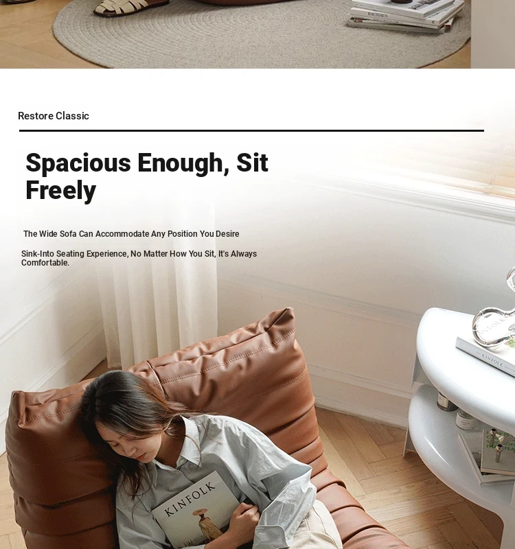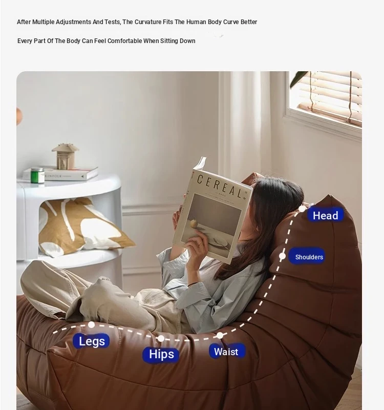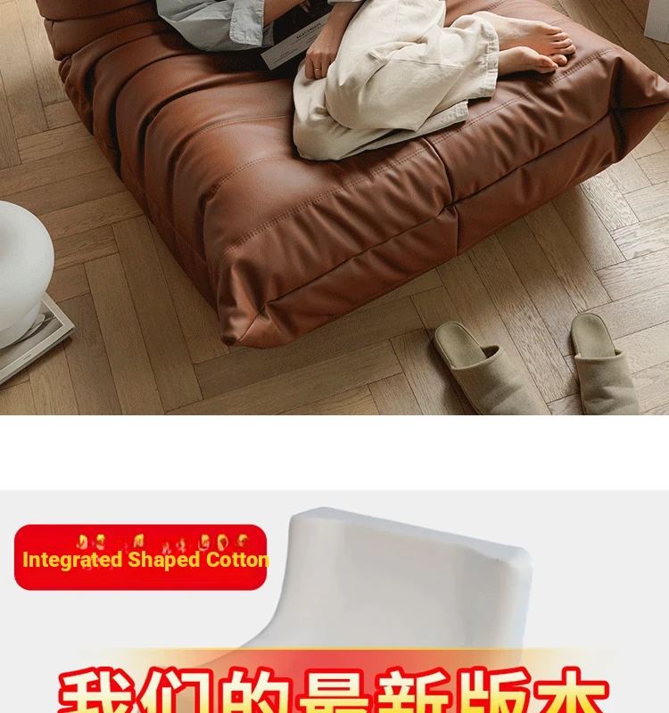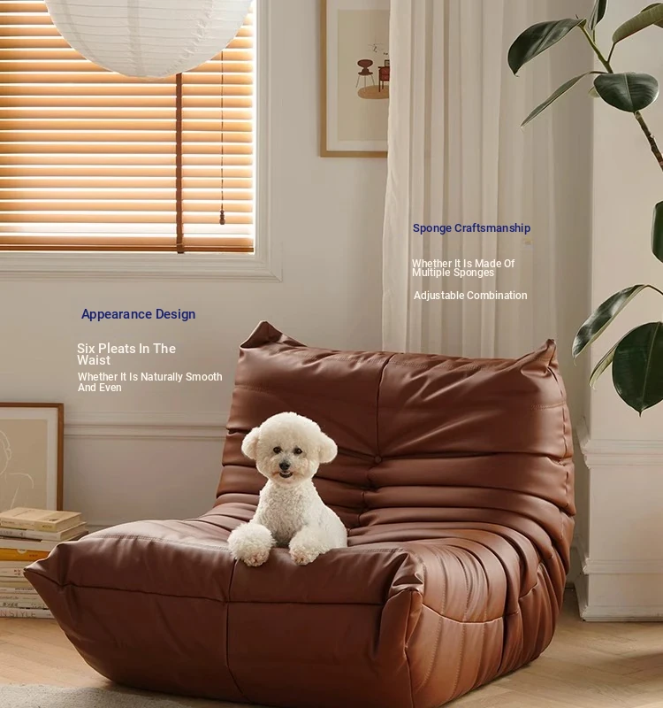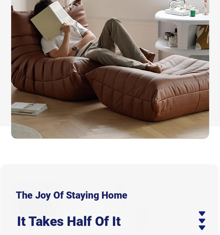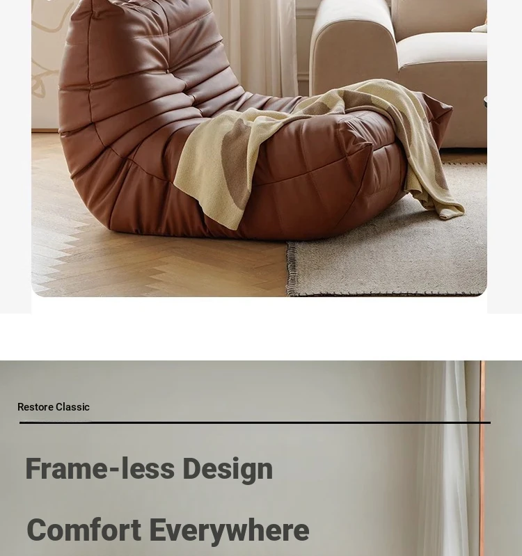 Togo Worm-Style Genuine Leather Sofa - Versatile Lounger for Bedroom, Living Room & Balcony - Perfect for Relaxing, Sleeping, or Sitting - Single Seat Lazy Chair