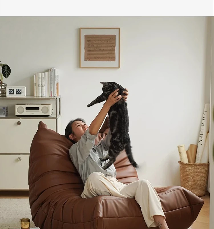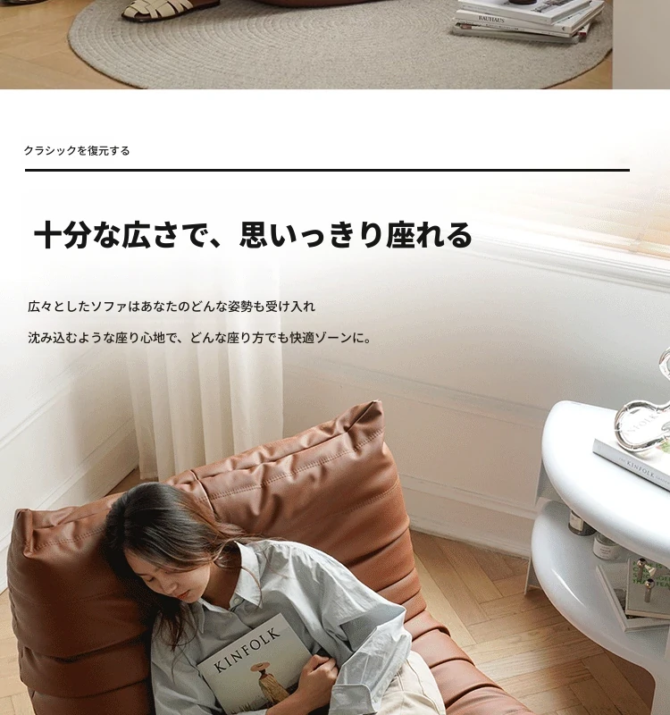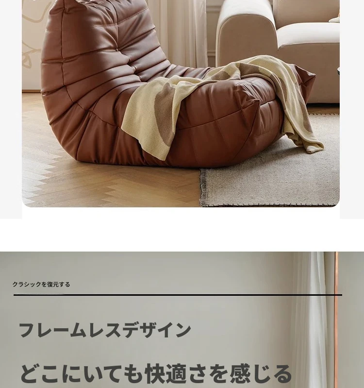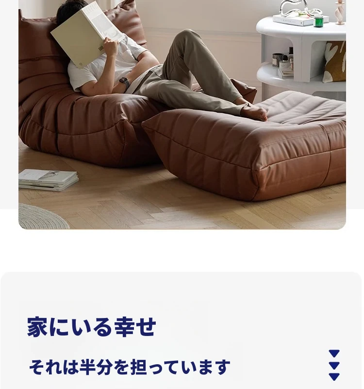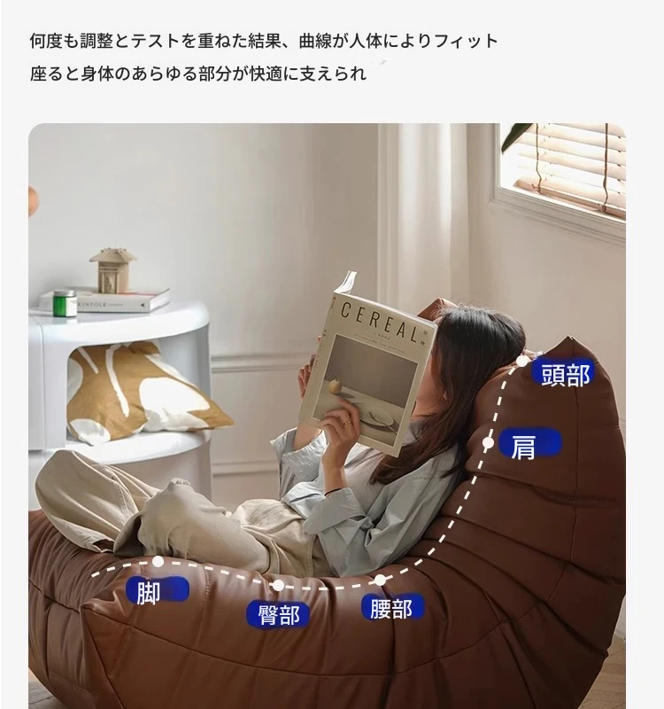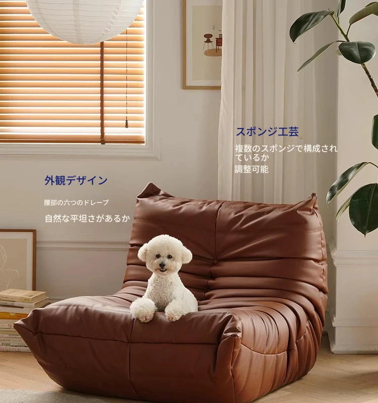 トゴ毛虫ソファ - 寝転びやすい本革のリラックスソファ!寝室やリビングに最適、快適な単独使用も可能なバルコニー用チェア。あなたのくつろぎ空間を演出します!