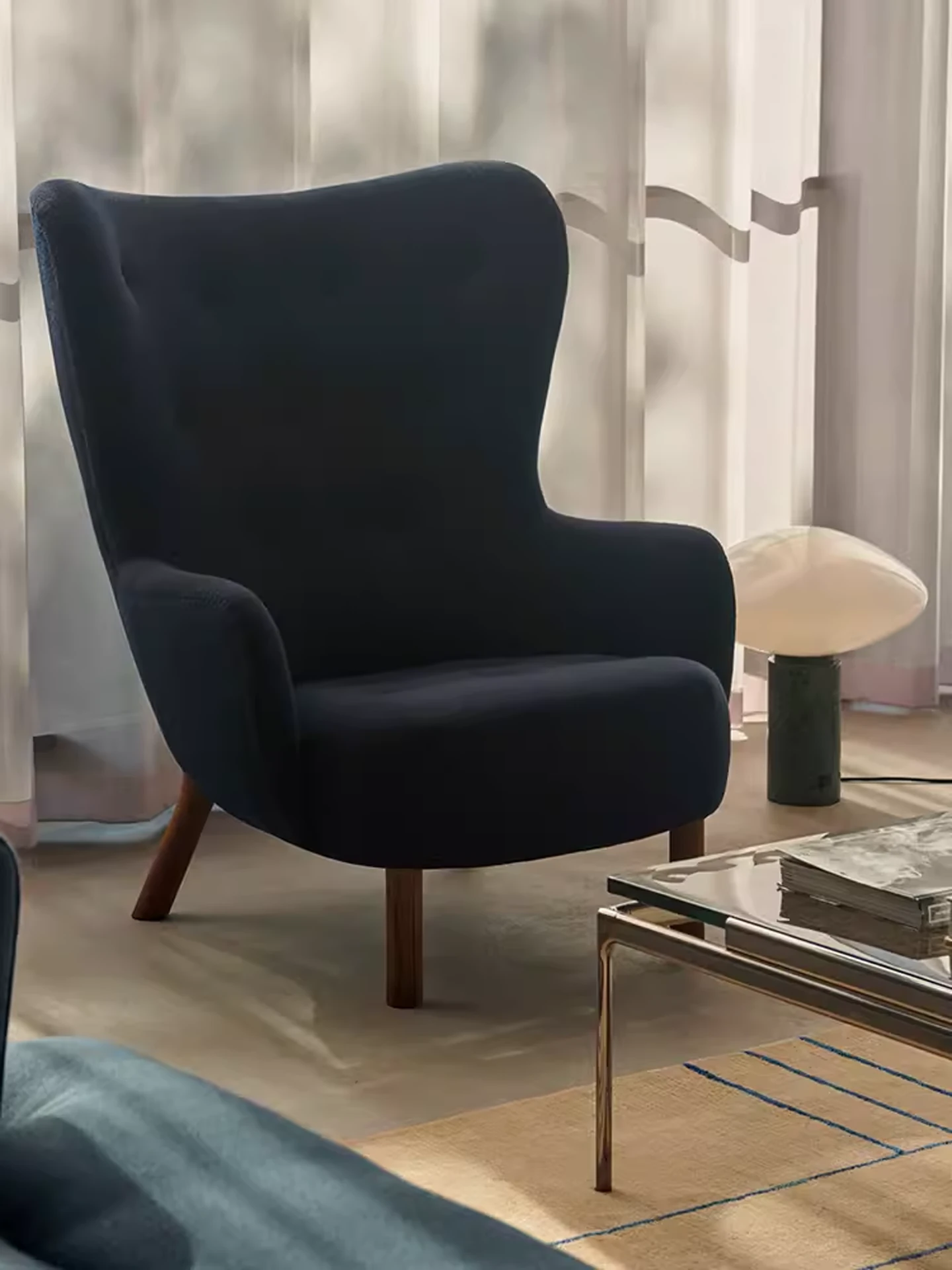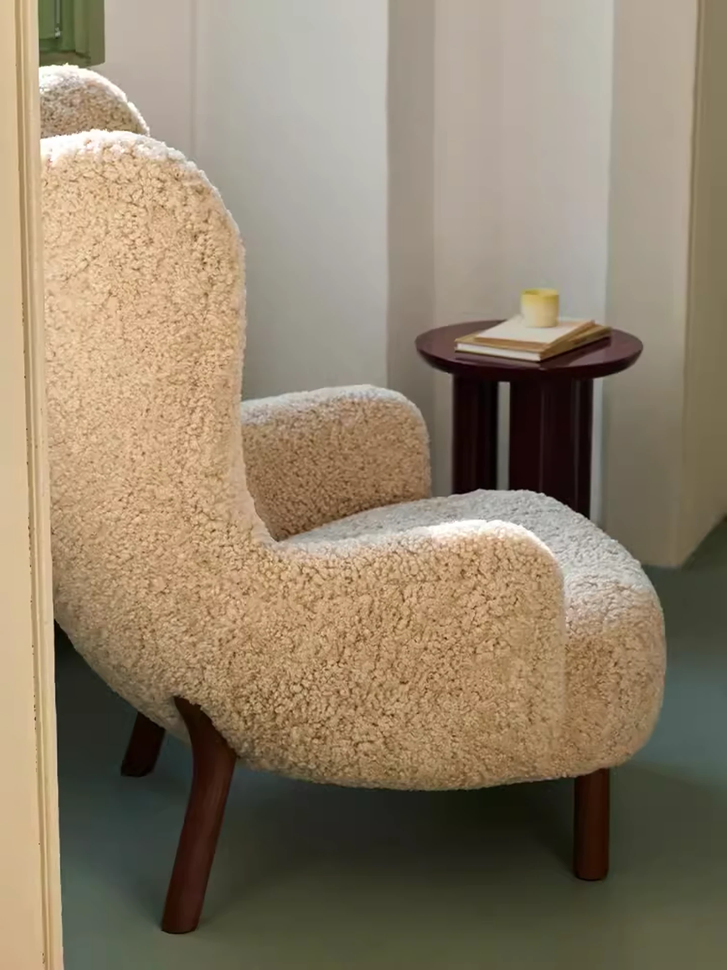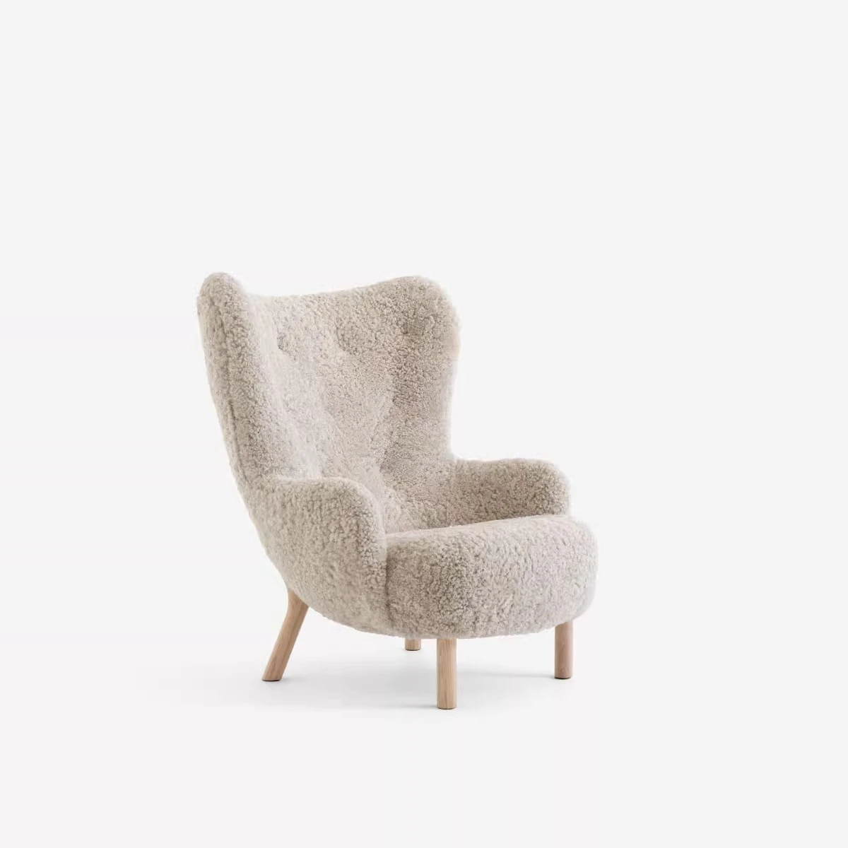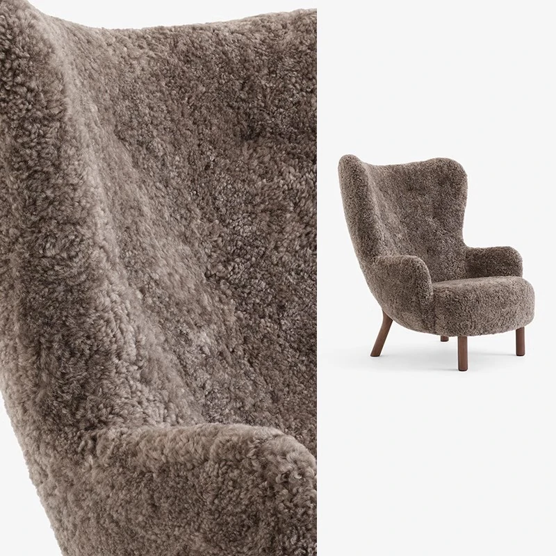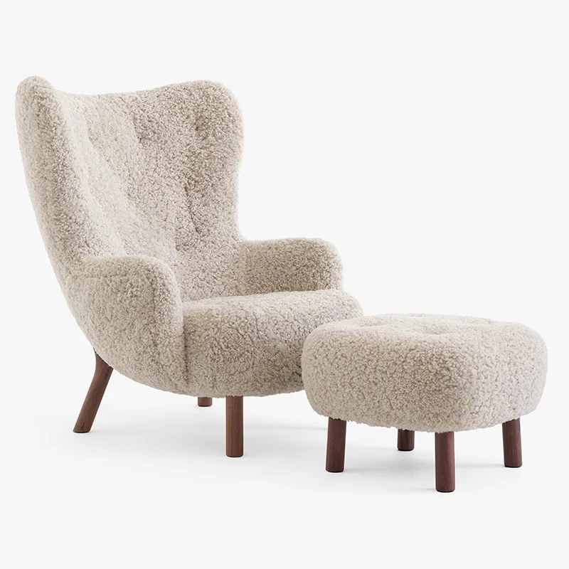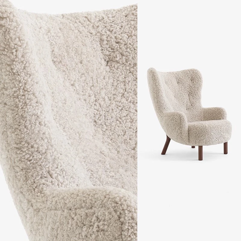 Trendy Nordic Danish Wool Lounge Chair - Modern Minimalist Cream Fabric Armchair for Stylish Living Spaces - Perfect for Relaxation and Decor