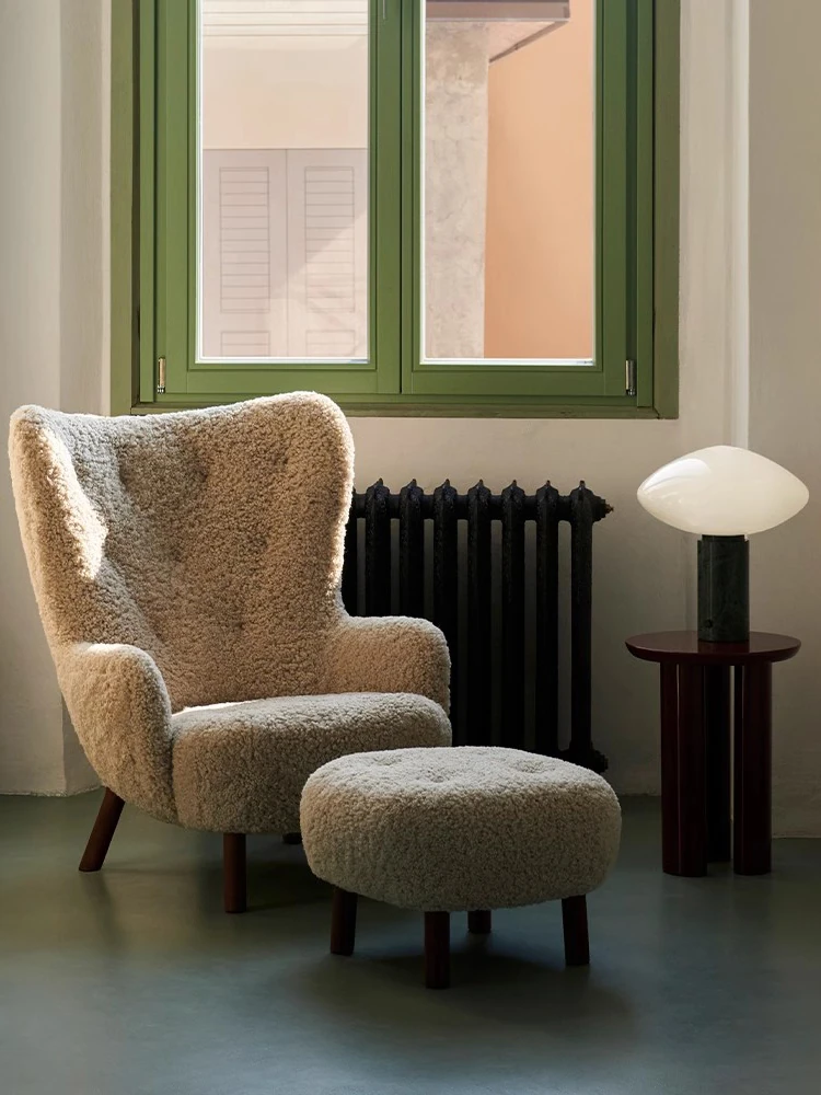 人気の北欧デンマーク羊毛チェア!リラックスできるモダンデザインの布製ソファチェア。クリーミーな風合いで、シンプルかつスタイリッシュな一人掛け椅子。あなたのリビングにぴったりのアクセントを!
