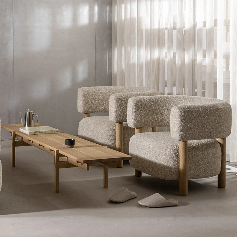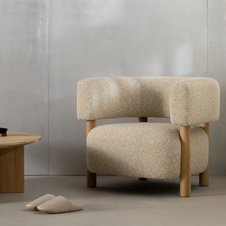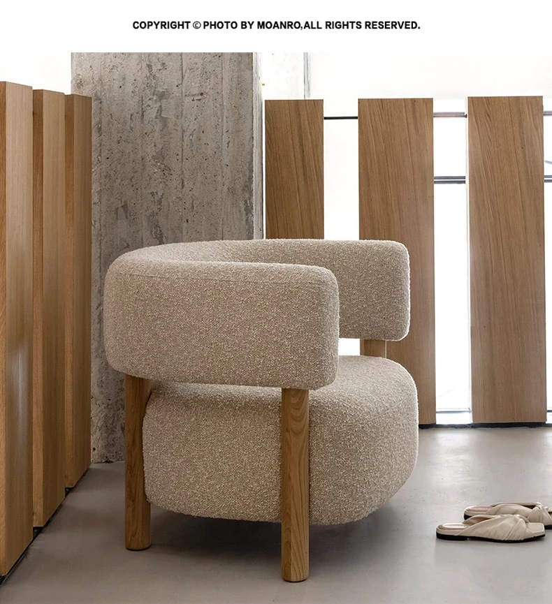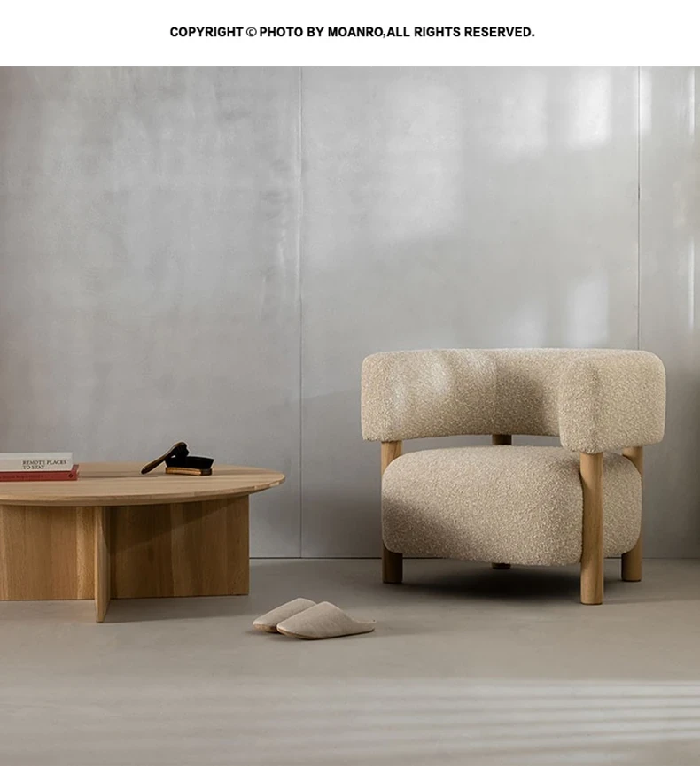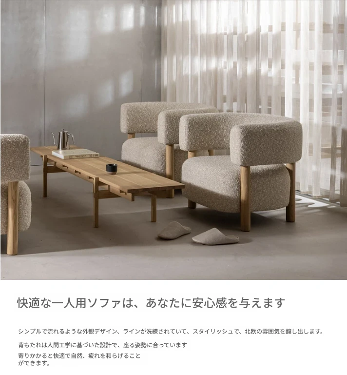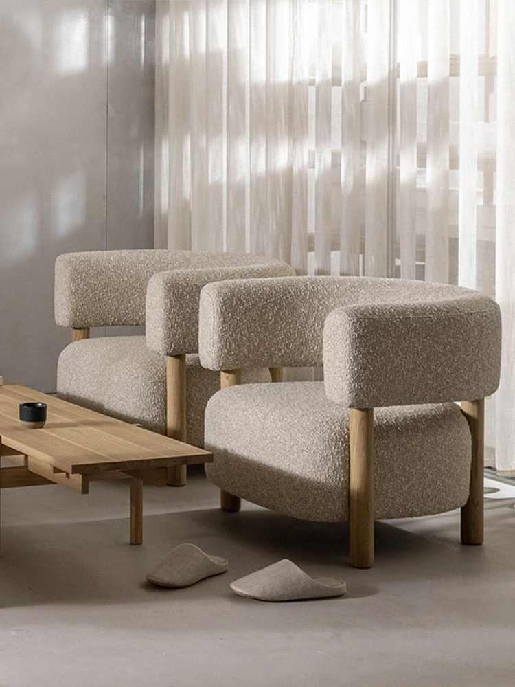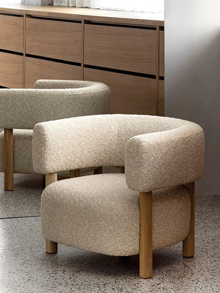 話題の北欧スタイル!軽やかでラグジュアリーな侘寂風デザインの小型リビング・寝室・バルコニー用モダンシンプルファブリック1人用ソファ。あなたの空間にスタイリッシュなアクセントを!