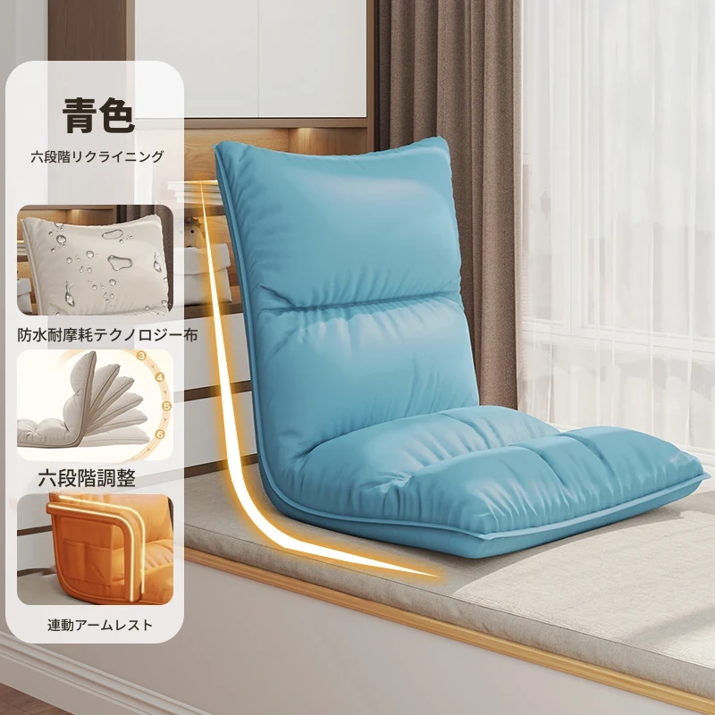 湖水ブルーアームレスト付き【6段階調整✨厚手ぬいぐるみコットン✨柔らかいテクノロジー皮】