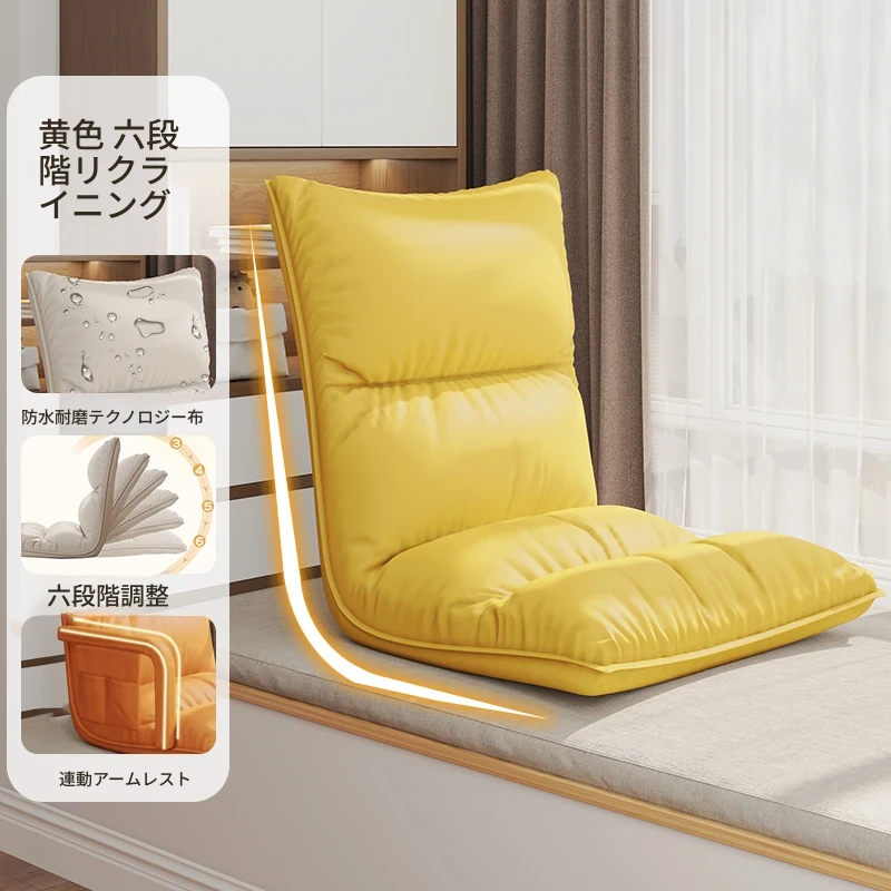 高貴な黄アームレスト付き【6段階調整✨厚手ぬいぐるみコットン✨柔らかいテクノロジー皮】