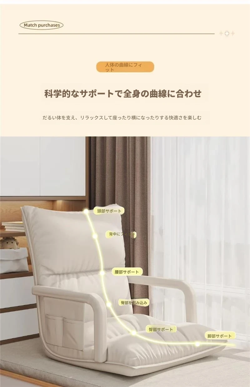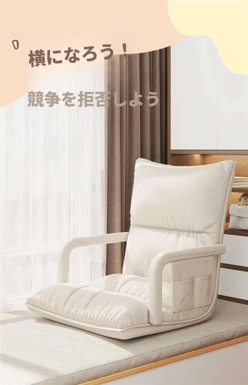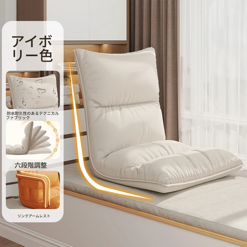 アイボリー色アームレスト付き【6段階調整✨厚手ぬいぐるみコットン✨柔らかいテクノロジー皮】