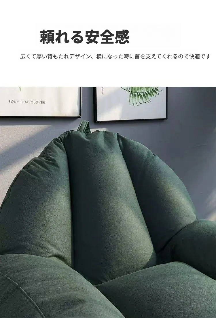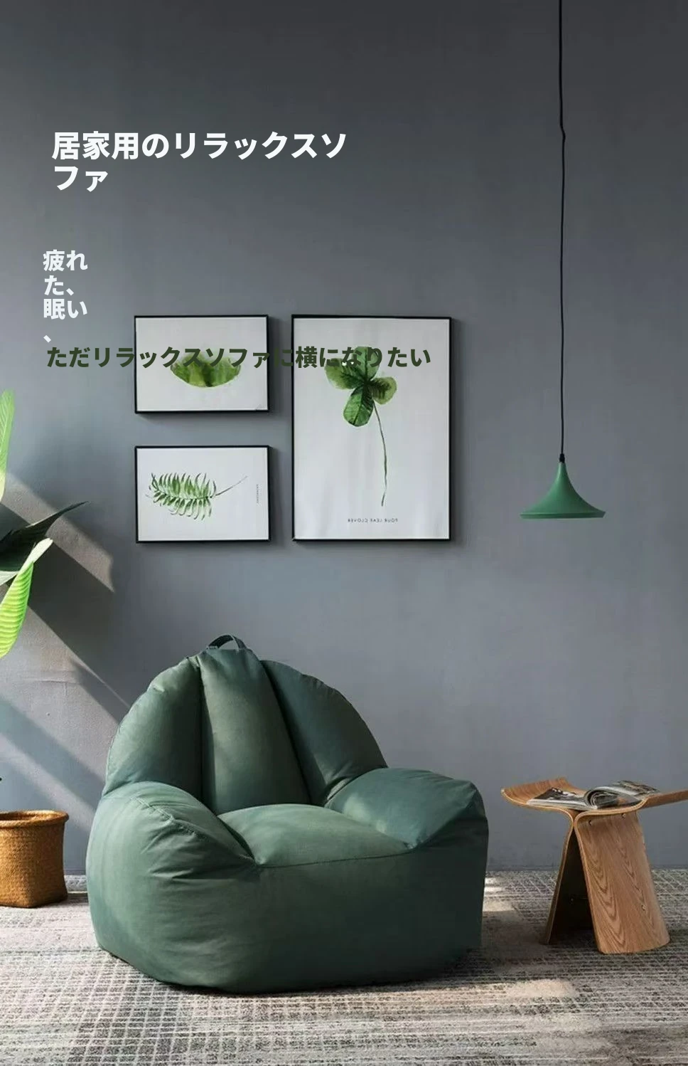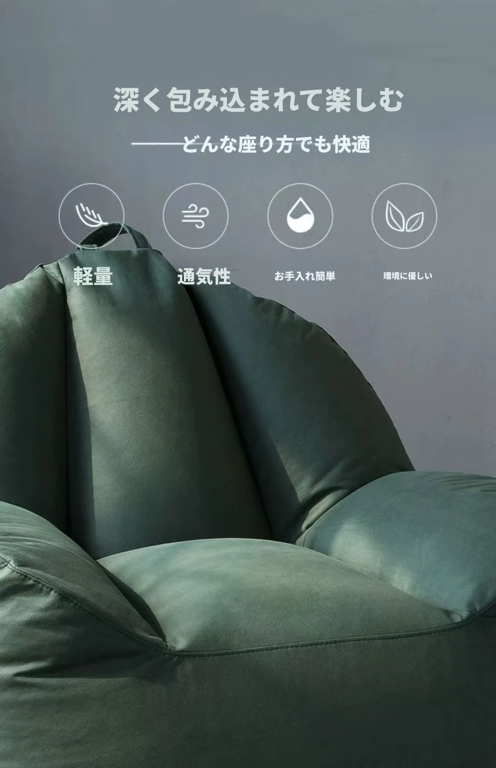 リラックスできる!寝ることもできる懒人ソファー - バルコニーや寝室にぴったりな一人用ソファ。豆袋デザインで快適な座り心地を実現。リビングにも最適な背もたれ付きのリクライニングチェア!