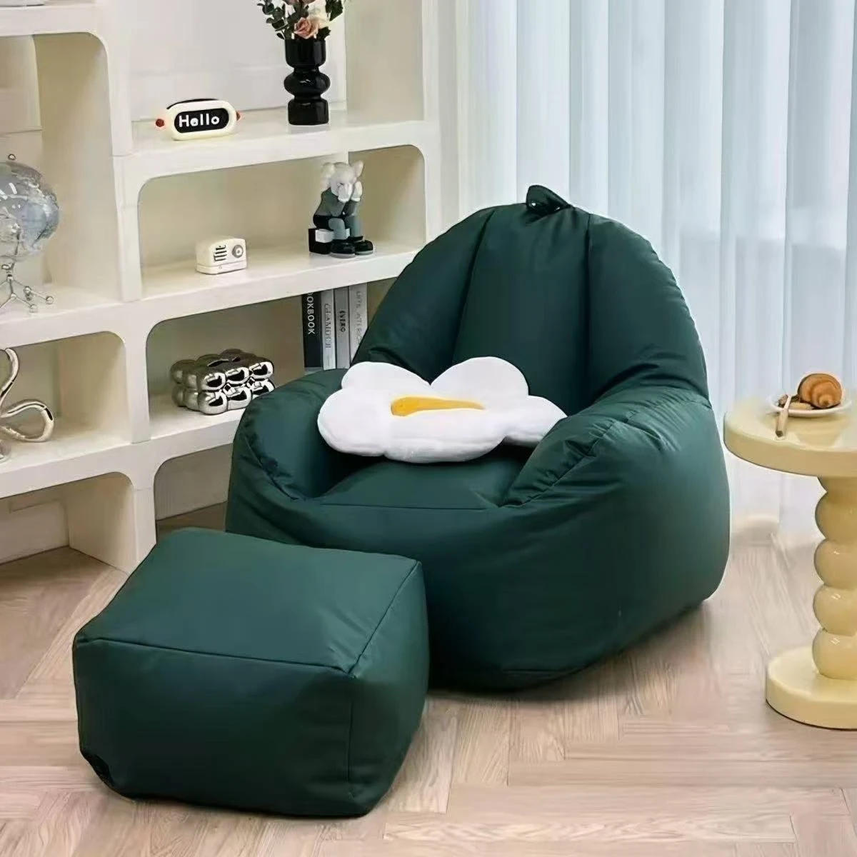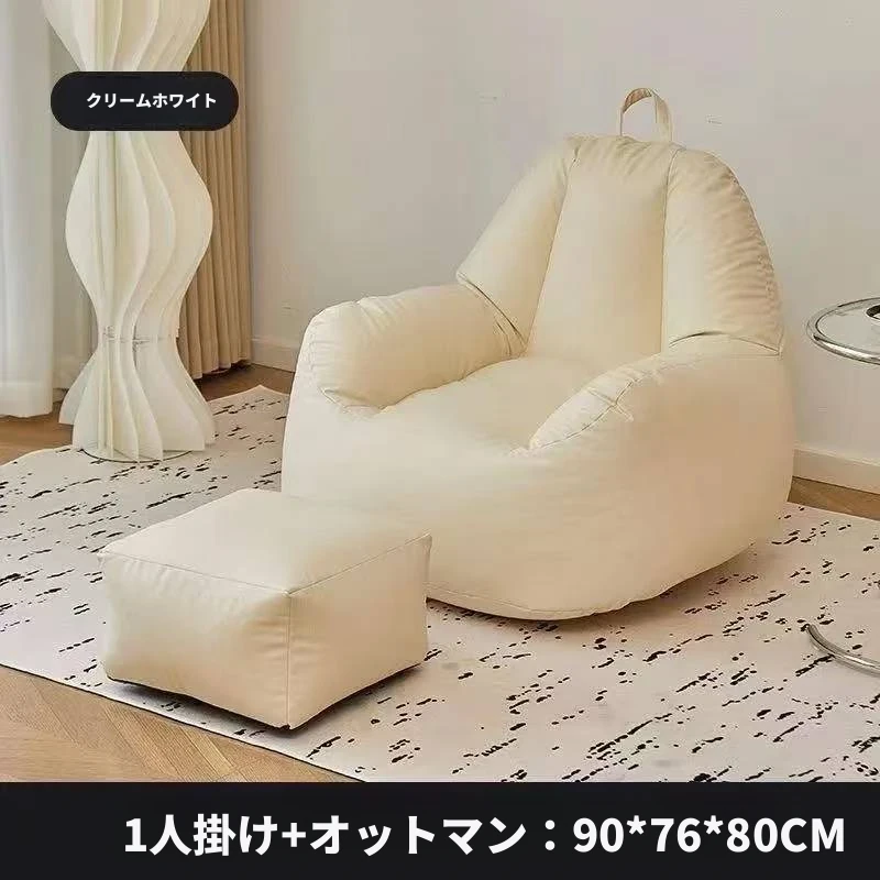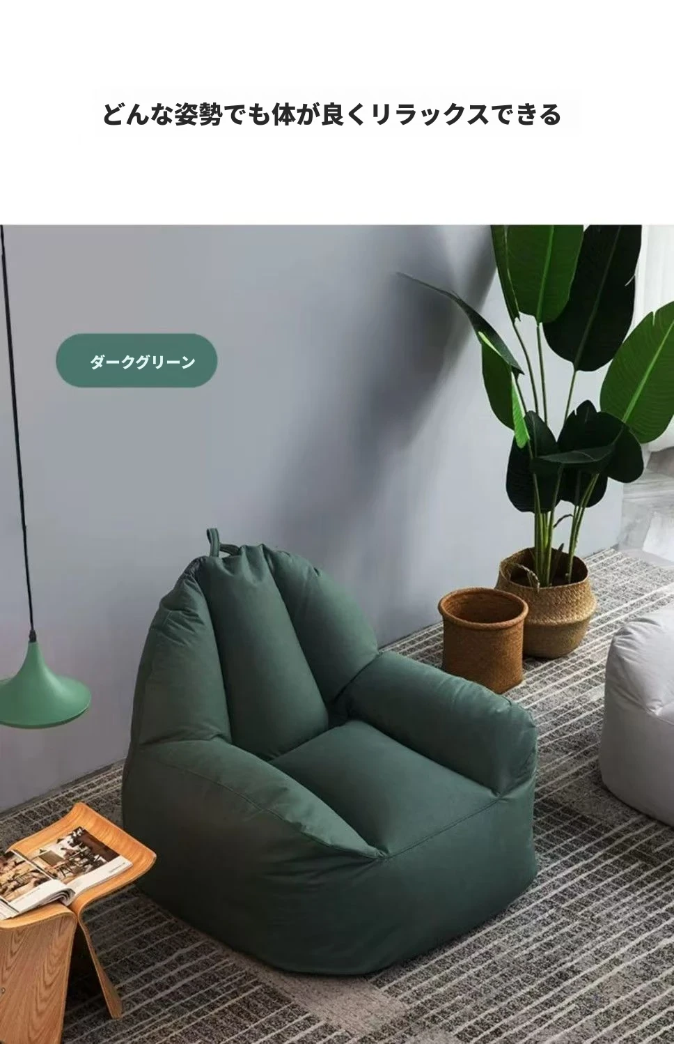 リラックスできる!寝ることもできる懒人ソファー - バルコニーや寝室にぴったりな一人用ソファ。豆袋デザインで快適な座り心地を実現。リビングにも最適な背もたれ付きのリクライニングチェア!