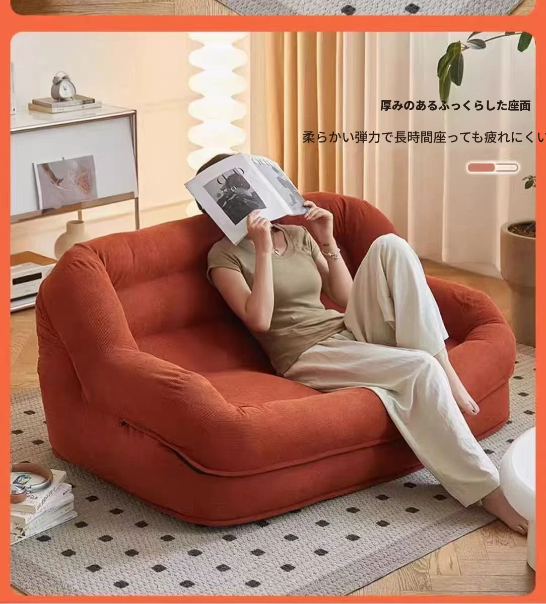 リラックスできるカウチソファ!寝転んでもOK、1人用・2人用、ベッドルームやバルコニーにぴったり。読書やくつろぎ、ストレス解消に最適な快適なハニカムチェア!
