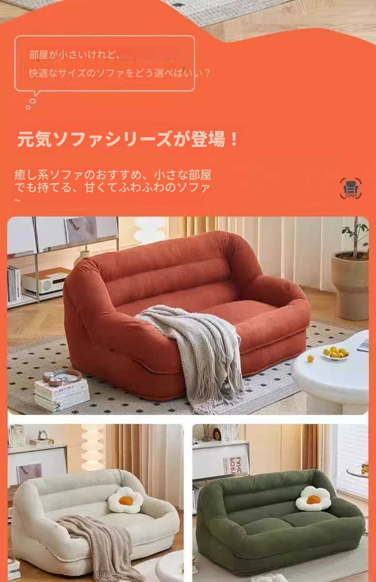 【シングルタイプのもこもこソファ】クリームホワイト