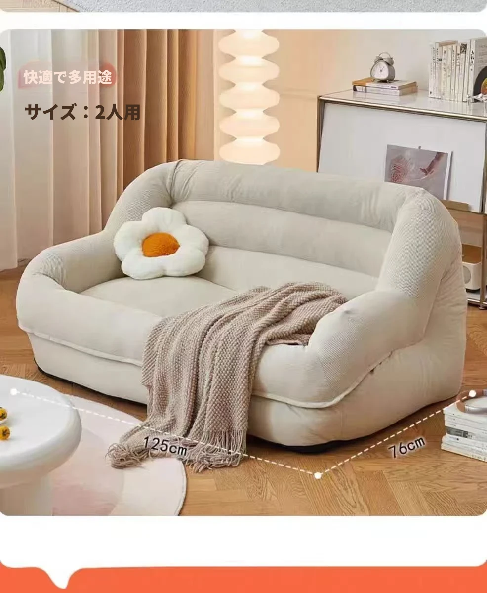 【ダブルタイプのもこもこソファ】クリームホワイト