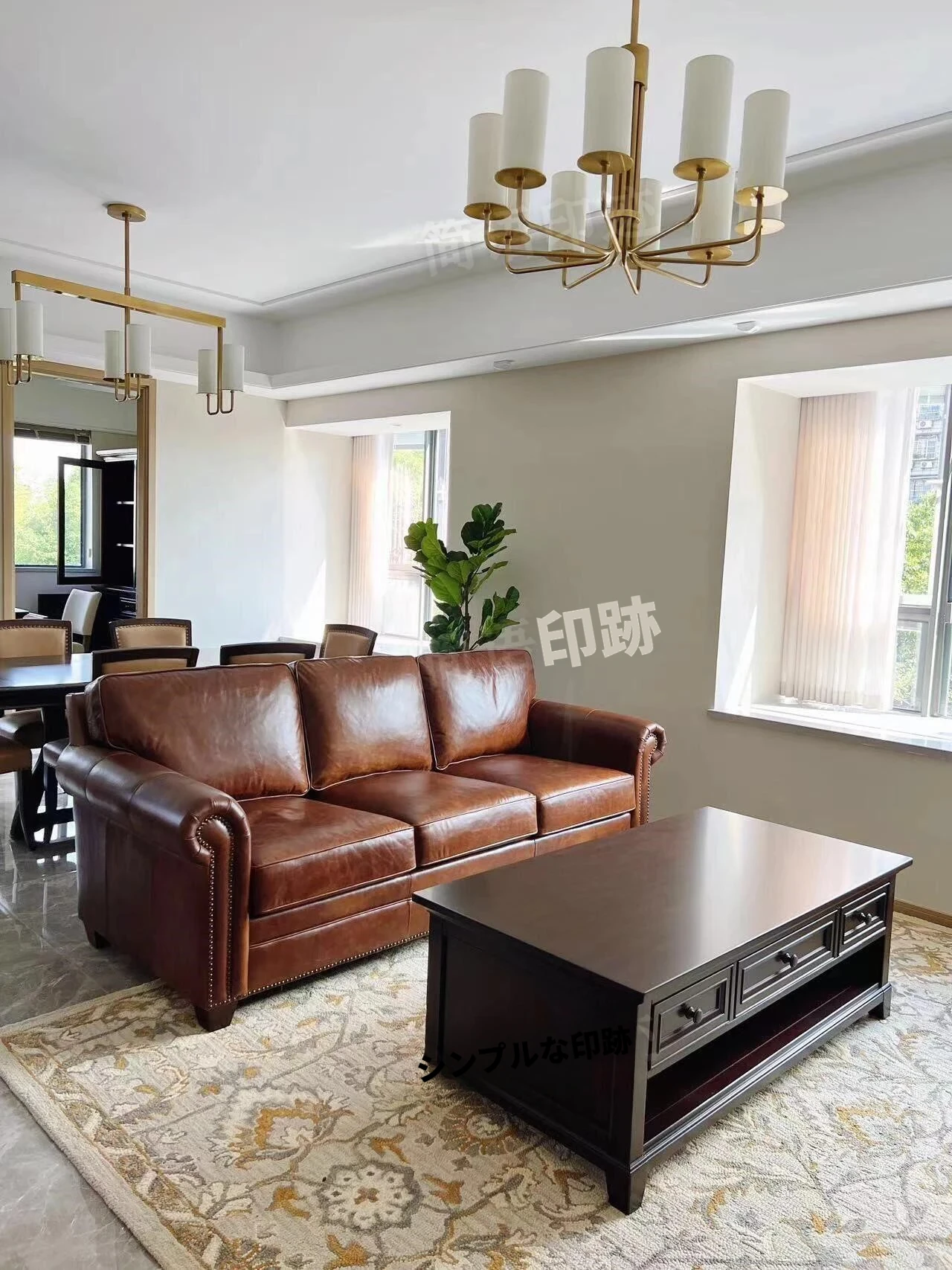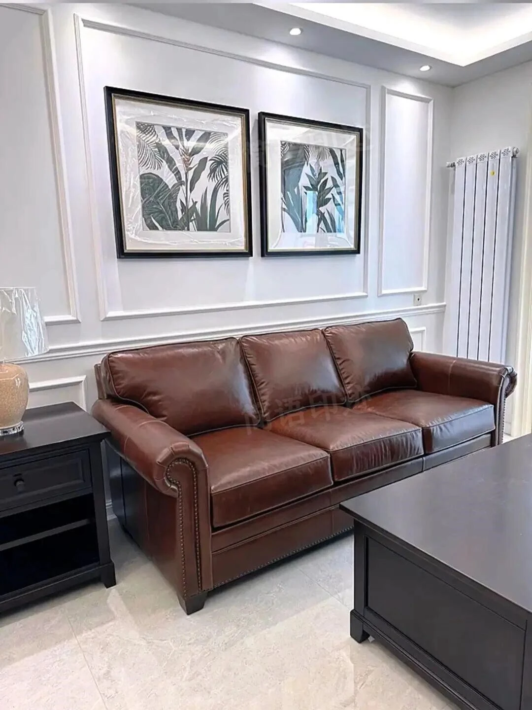 バトンアメリカンレトロ本革ソファ|上質なトップグレイン牛革使用|コンパクトなリビングに最適な小型ソファ|ヴィンテージ風オイルワックスレザー仕上げで、上品な雰囲気を演出!