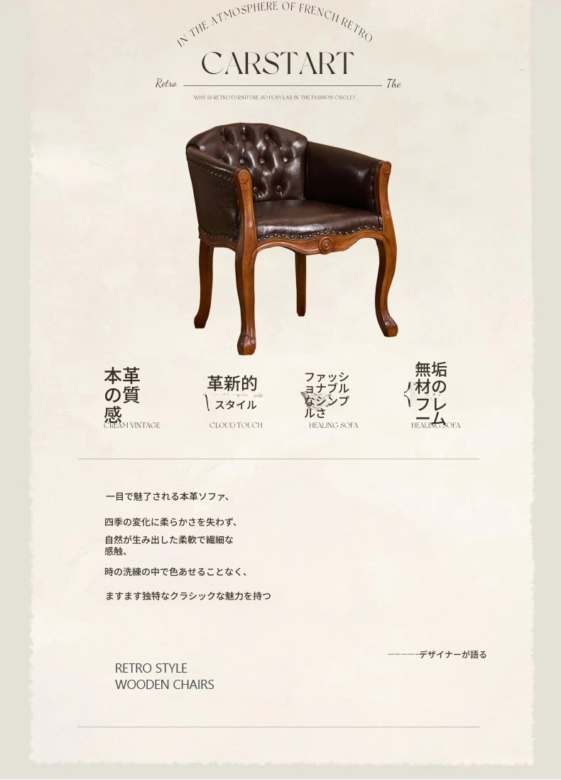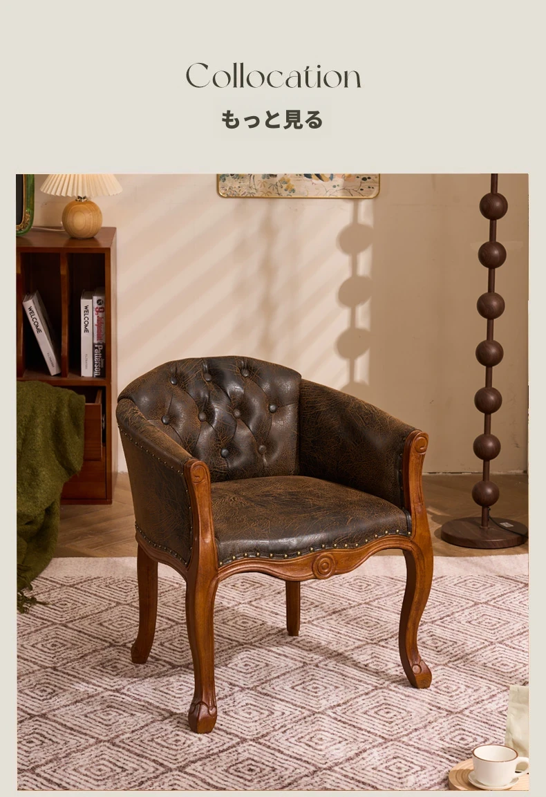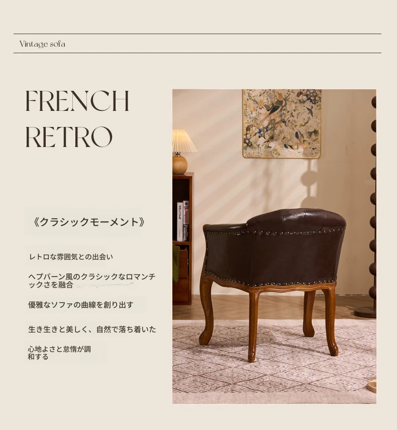 アメリカンスタイルのヴィンテージ一人掛けソファチェア|無垢材とレザーリングのリラックスチェア|バルコニーや寝室、ダイニングに最適な小型ソファ!快適なひとときをお楽しみください。
