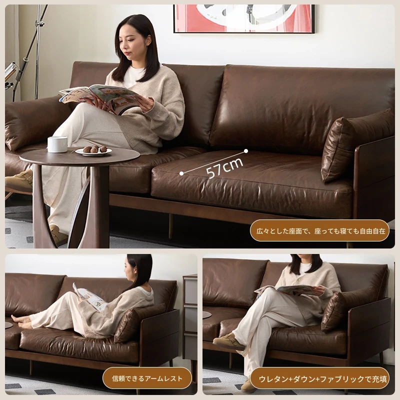 2.05mトリプルソファ 輸入フルオイルワックス本革【家庭用豪華型】