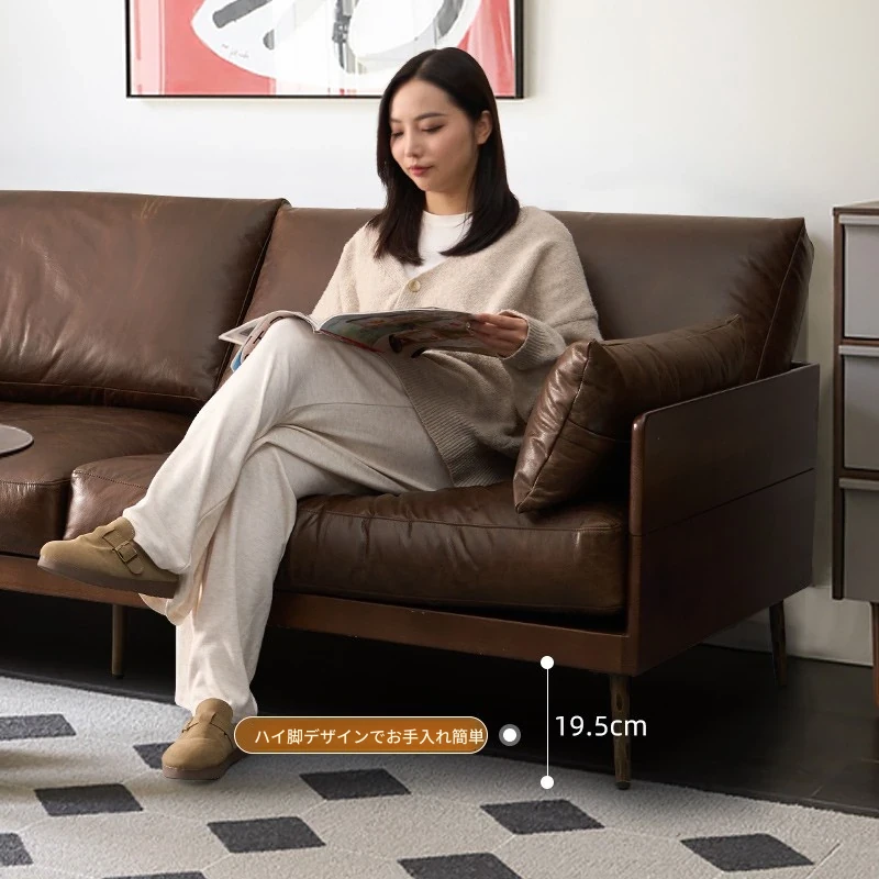 0.95mシングルソファ 輸入フルオイルワックス本革【家庭用豪華型】
