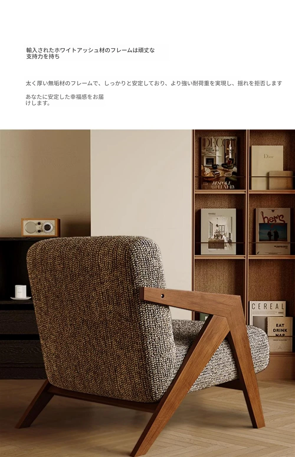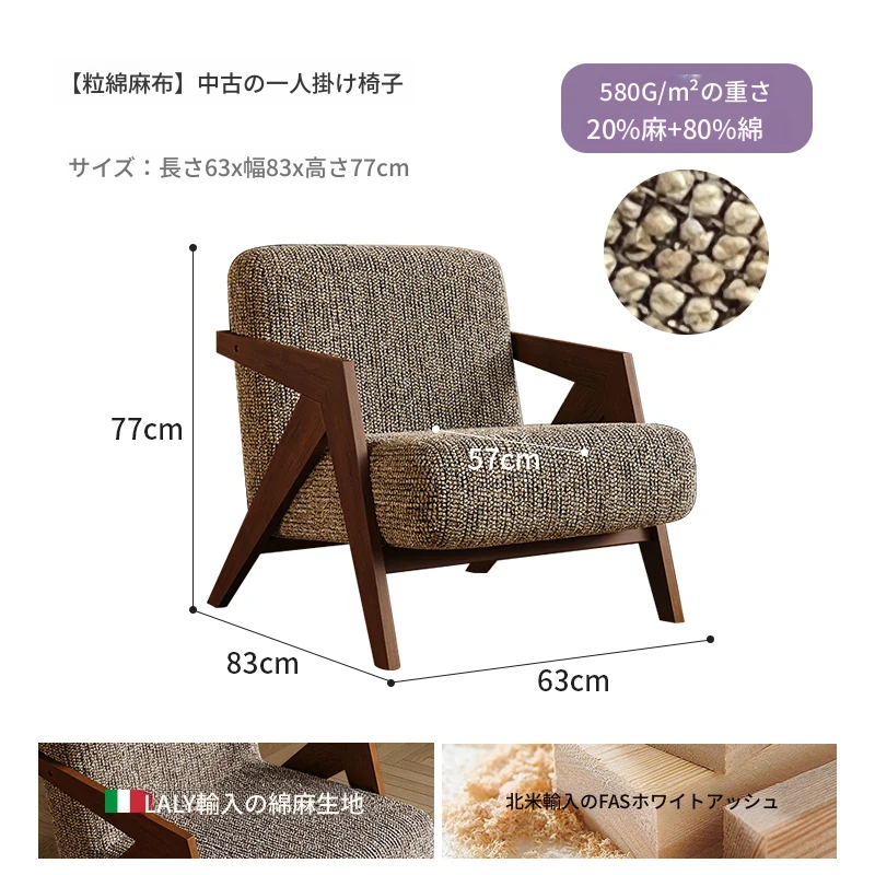フレンチヴィンテージ風一人掛けソファチェア - リアルウッドデザイン、客間やバルコニーにぴったり!チャーミングなシャーリーデザインで、リラックスしたひとときを演出します。おしゃれな民宿にも最適!