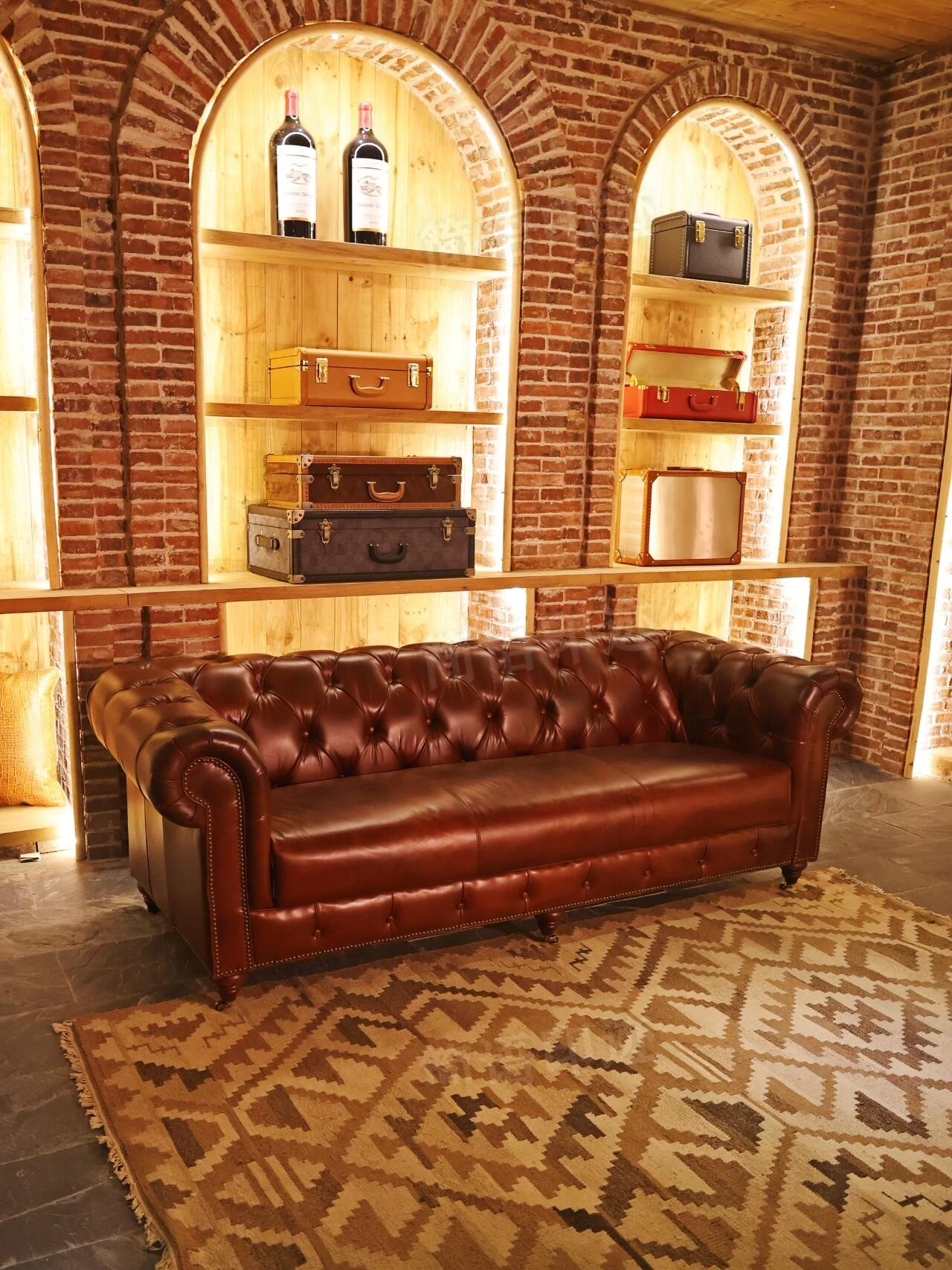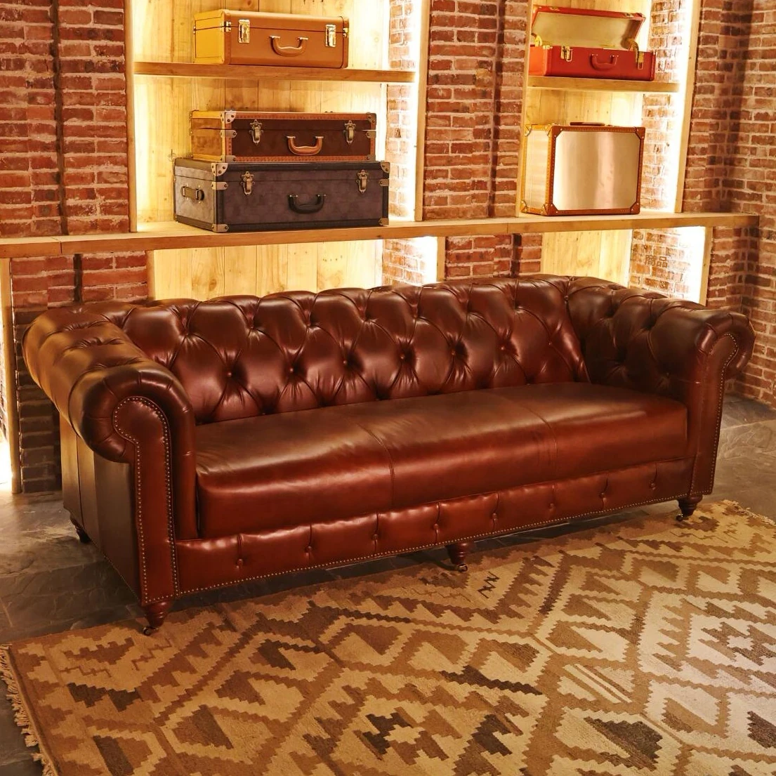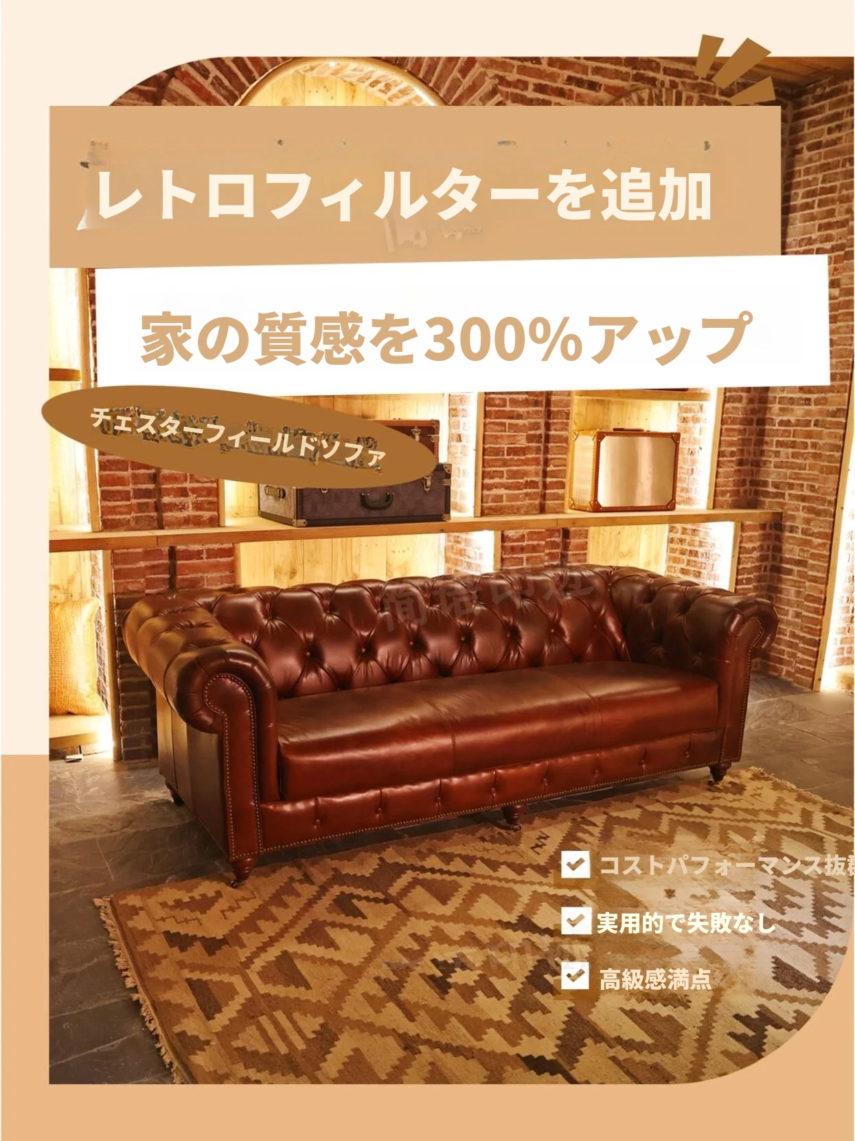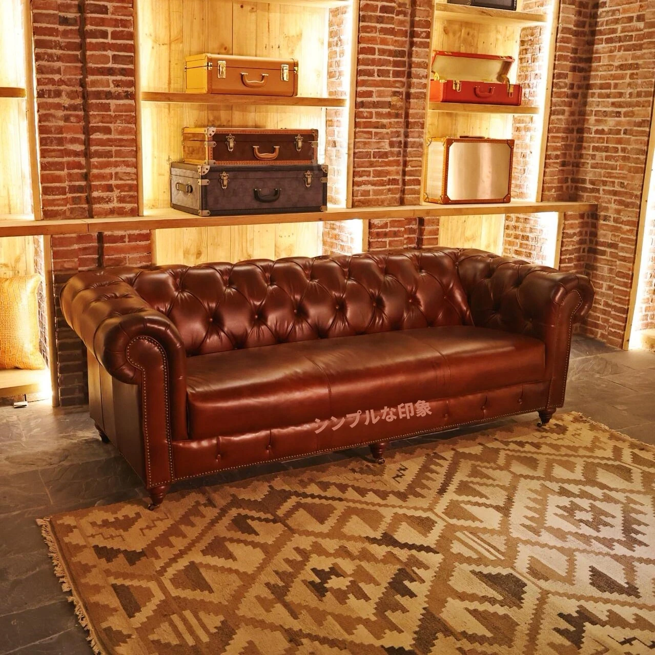 ヴィンテージ風 本革ソファ 小型リビングに最適 アメリカンレトロ デザイン シガーバーや接客スペースにもぴったり 使い込むほどに味わい深くなる魅力的な一品