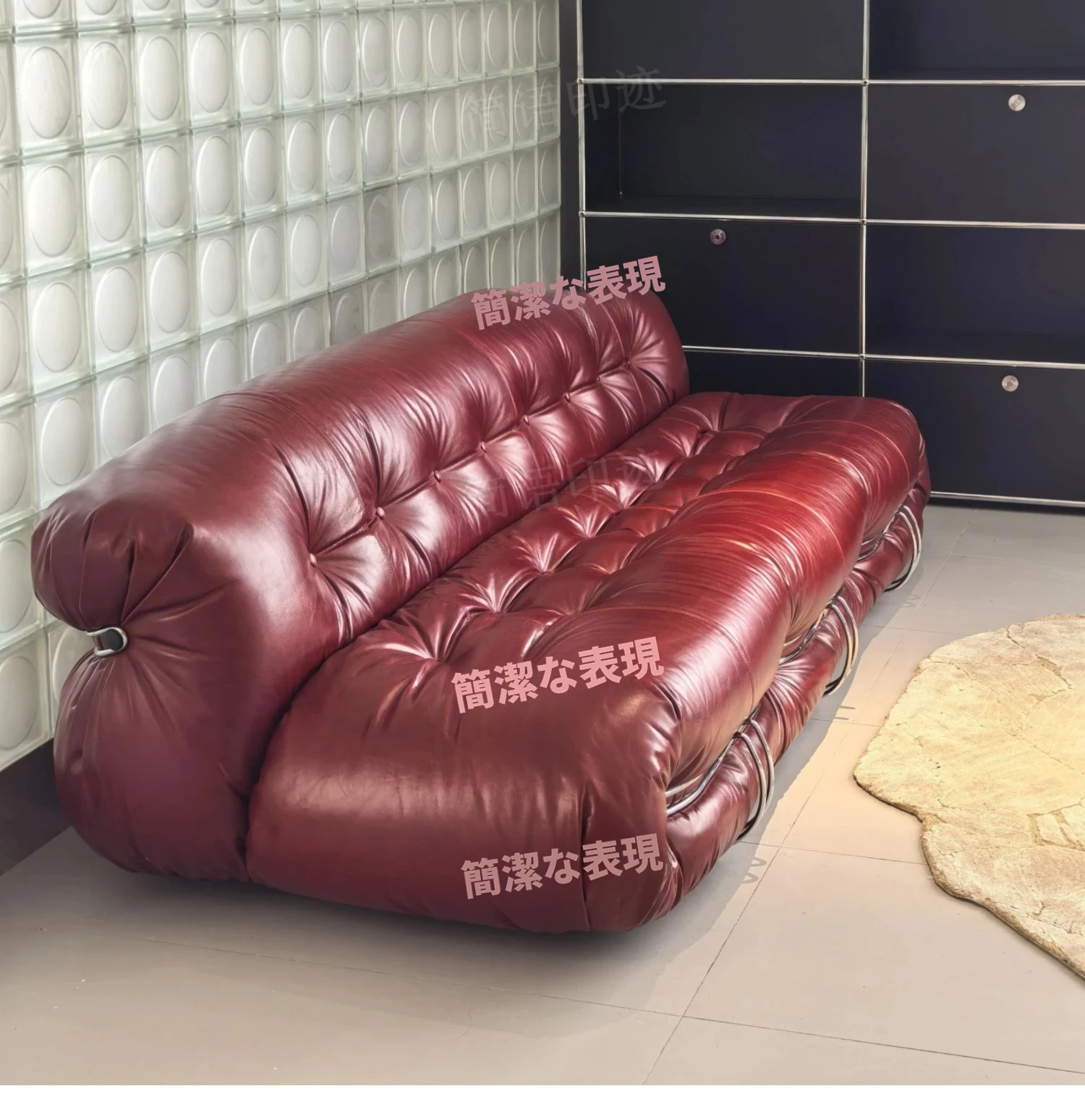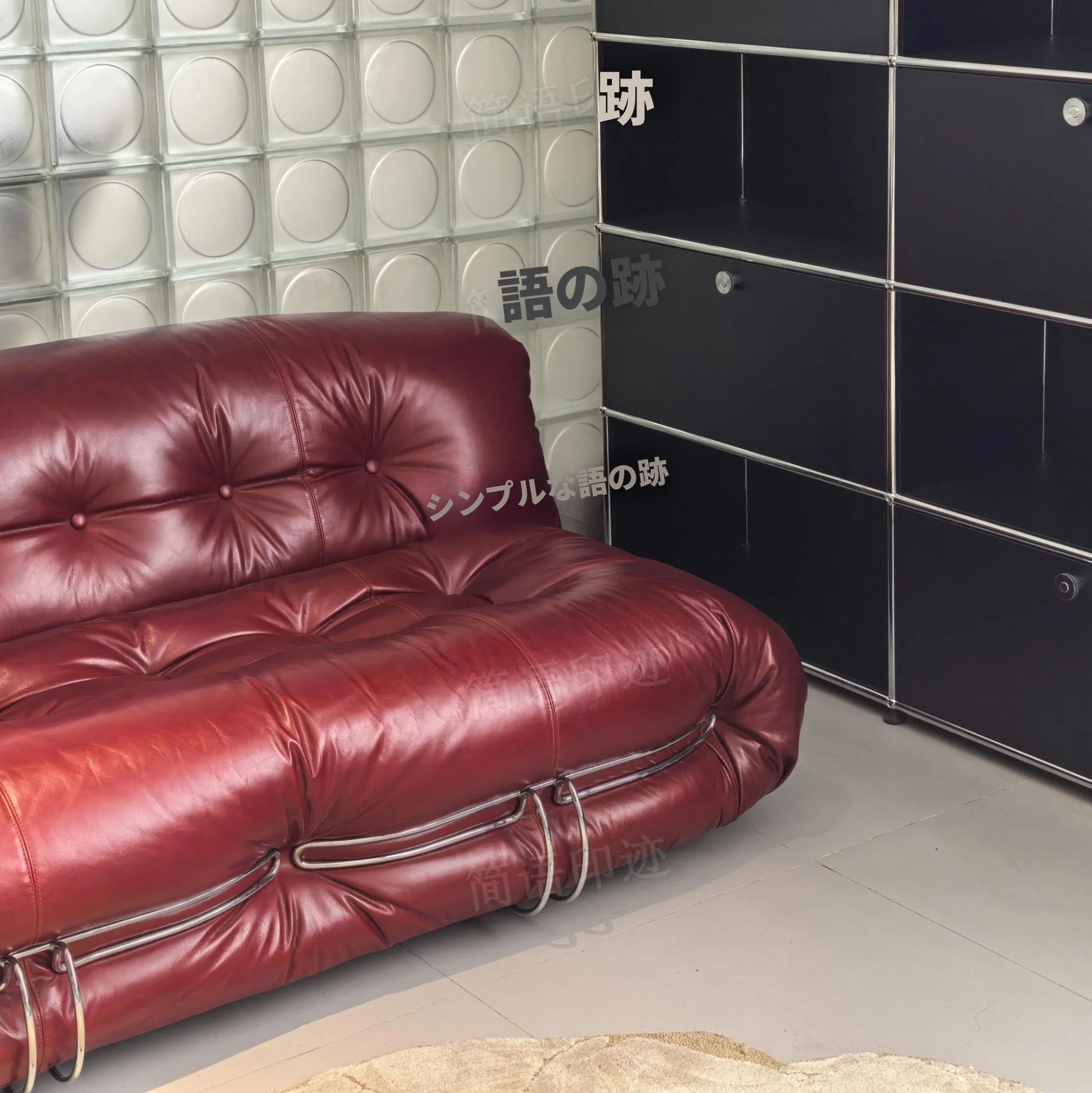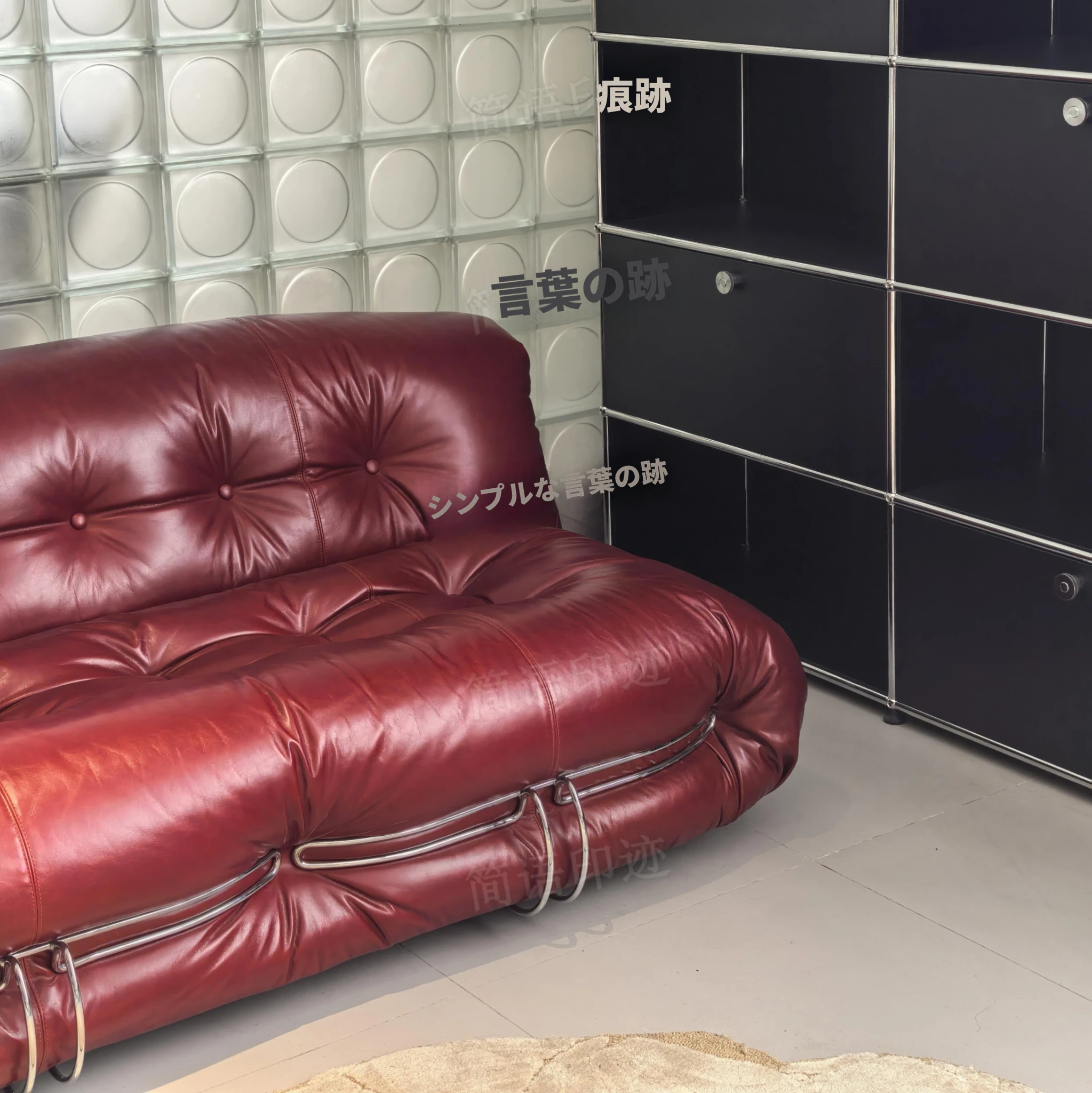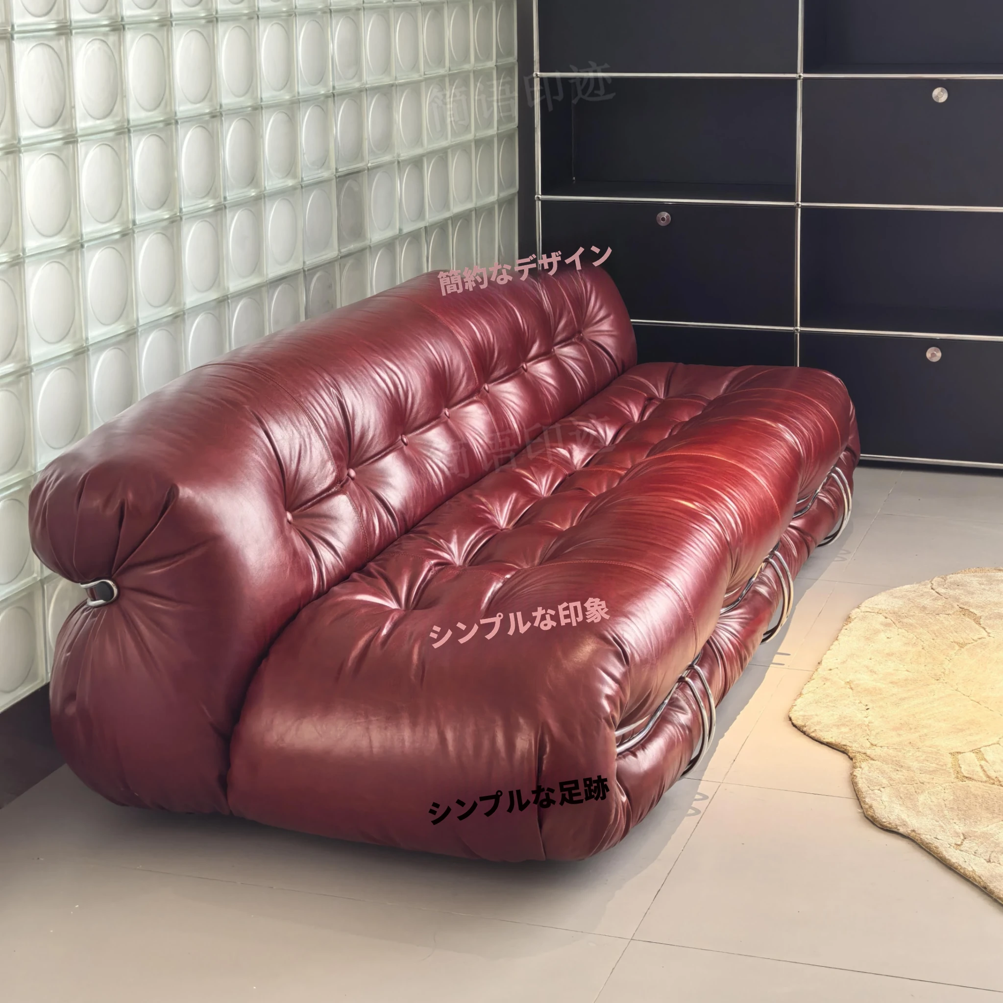 レトロな風合いのスチールテイスト・ヒッポ・本革ソファー!最高級のトップグレイン牛革を使用した2025年新作、ストレートタイプの3人掛けソファ。おしゃれで快適なリビング空間を演出します!