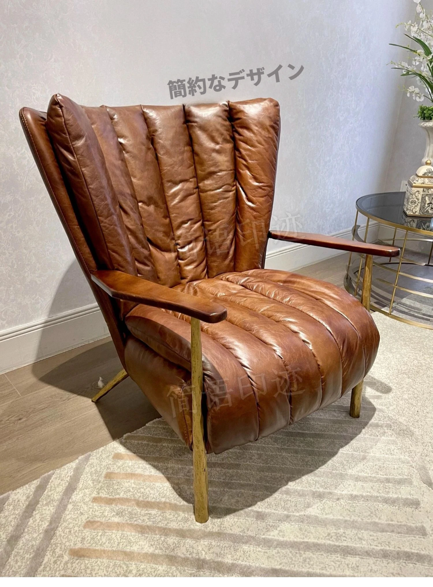Prem シガーアームチェア - 輸入接触面の本革【回転なし】