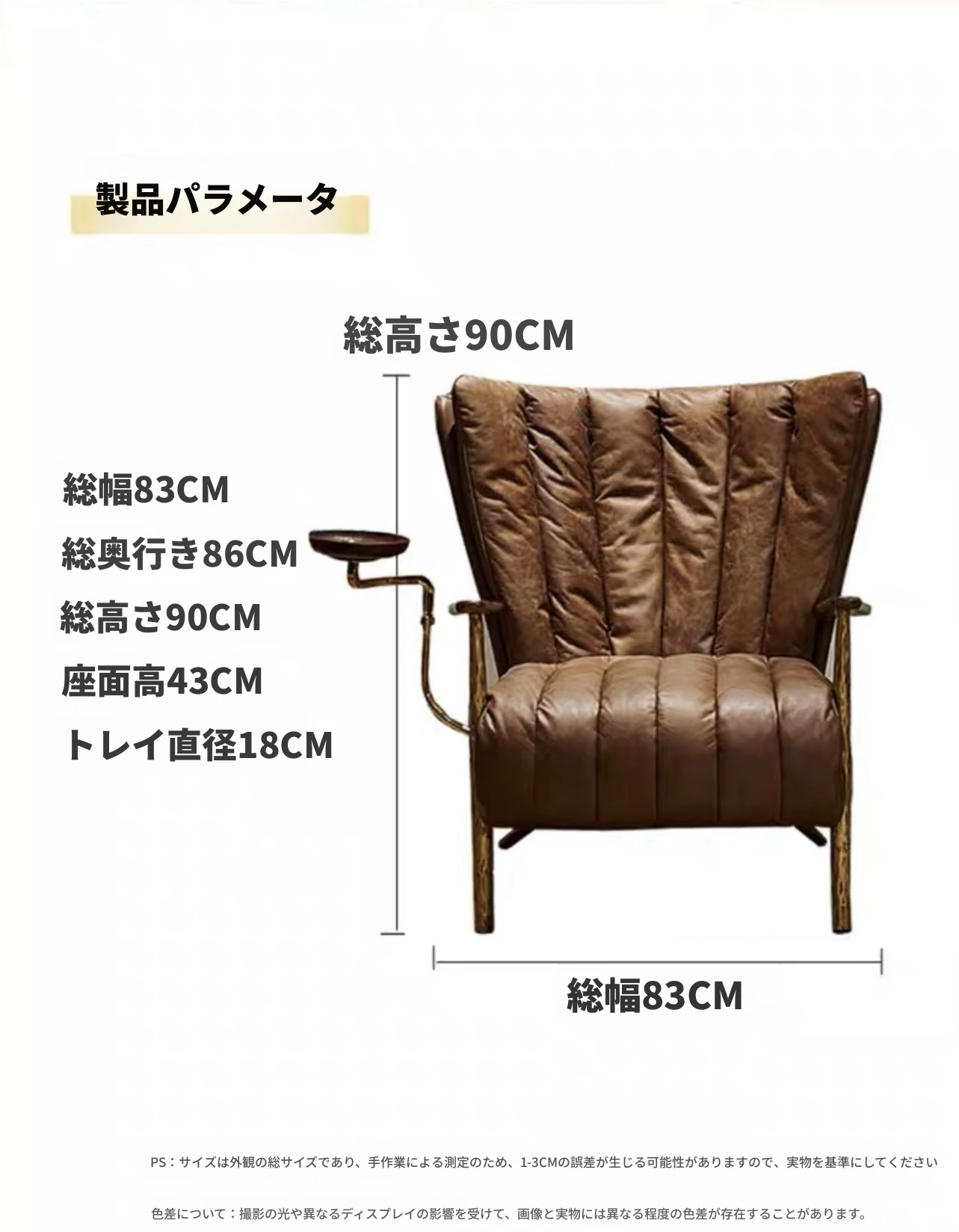Prem シガーアームチェア - 輸入接触面の本革【家庭用おすすめタイプ】