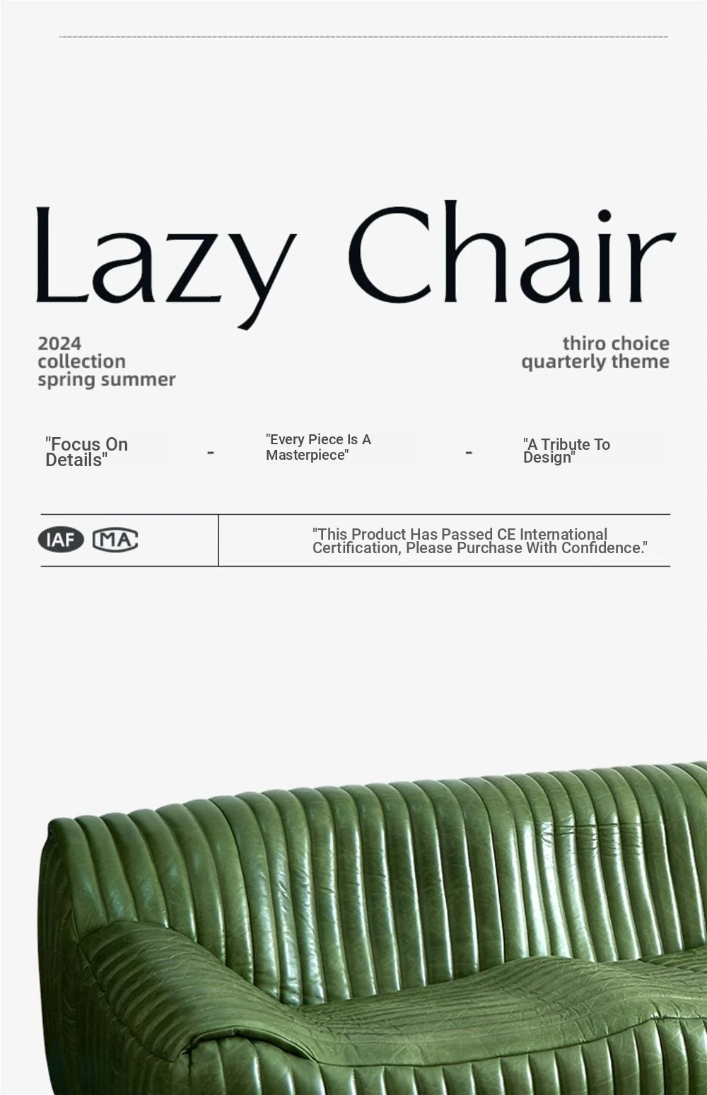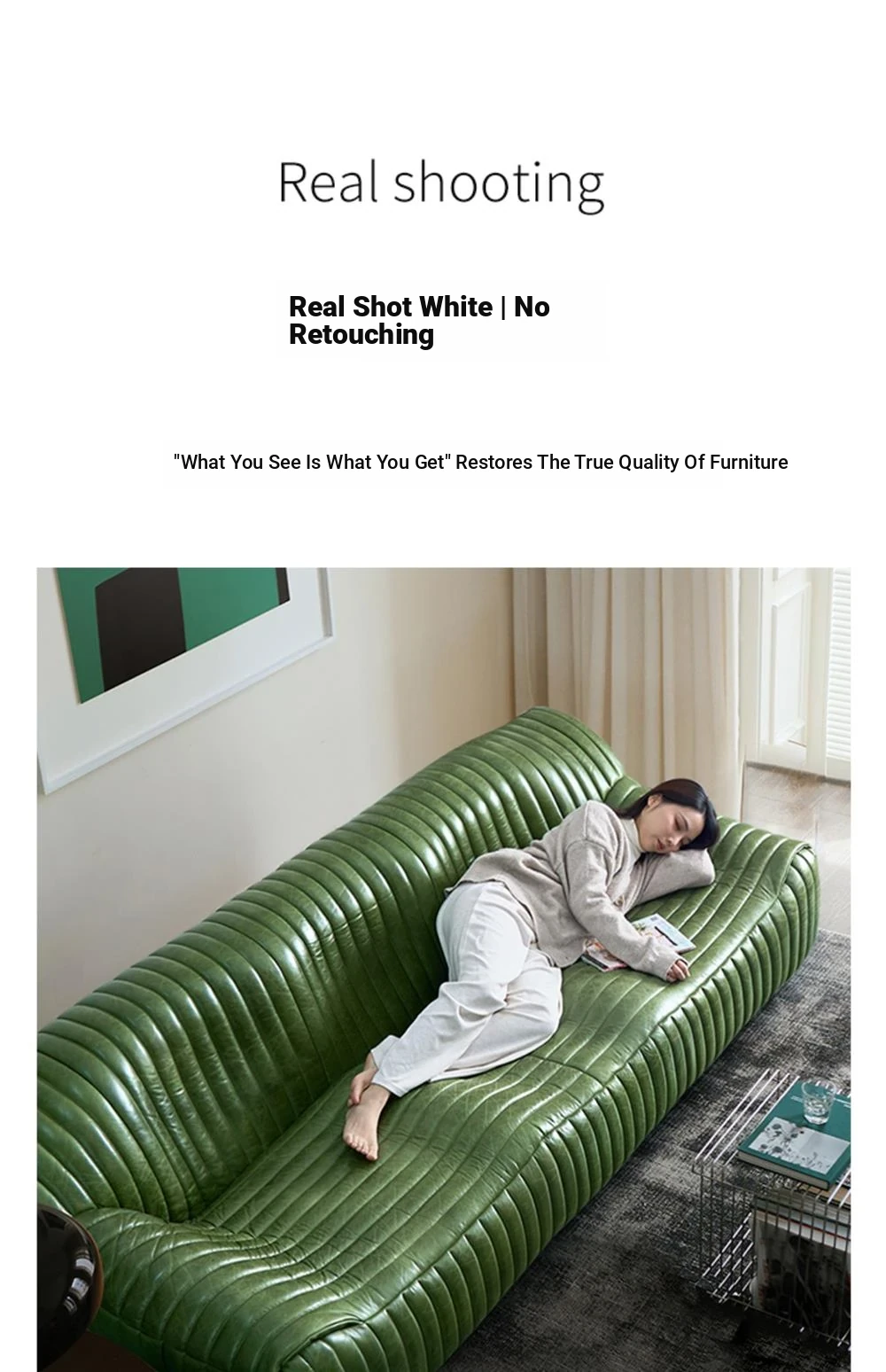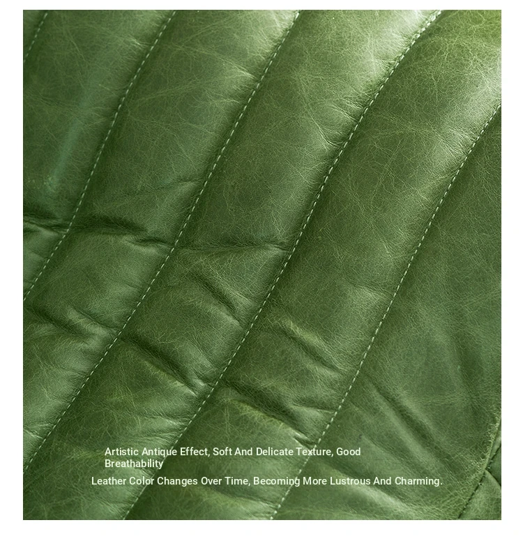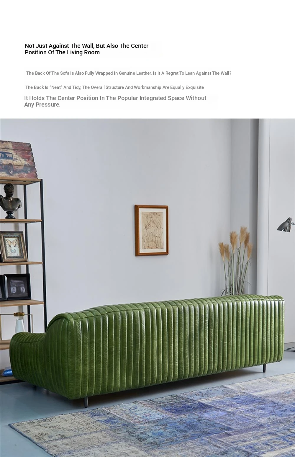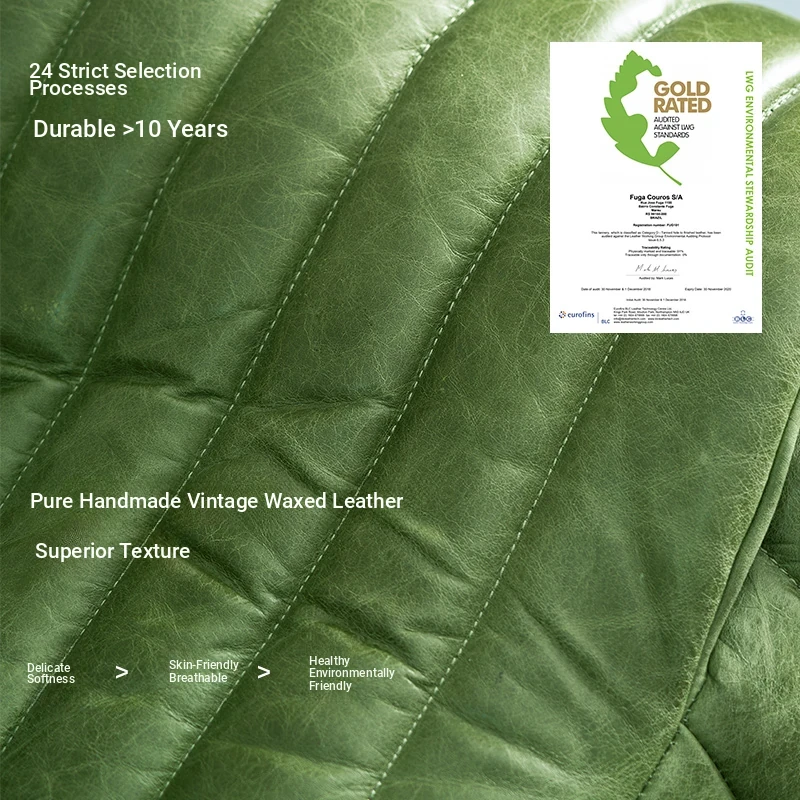 Vintage Wave Sofa - Retro Waxed Full-Grain Leather, Green, Perfect for Small Living Rooms, Designer-Approved Retro Style