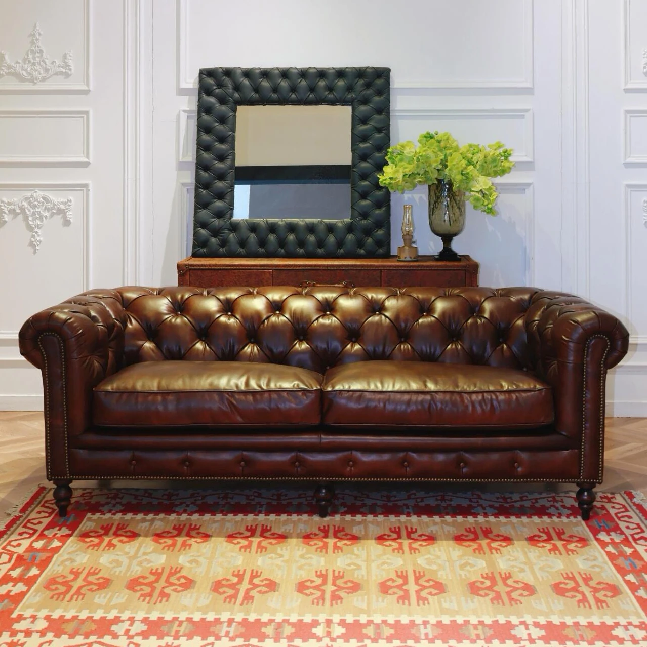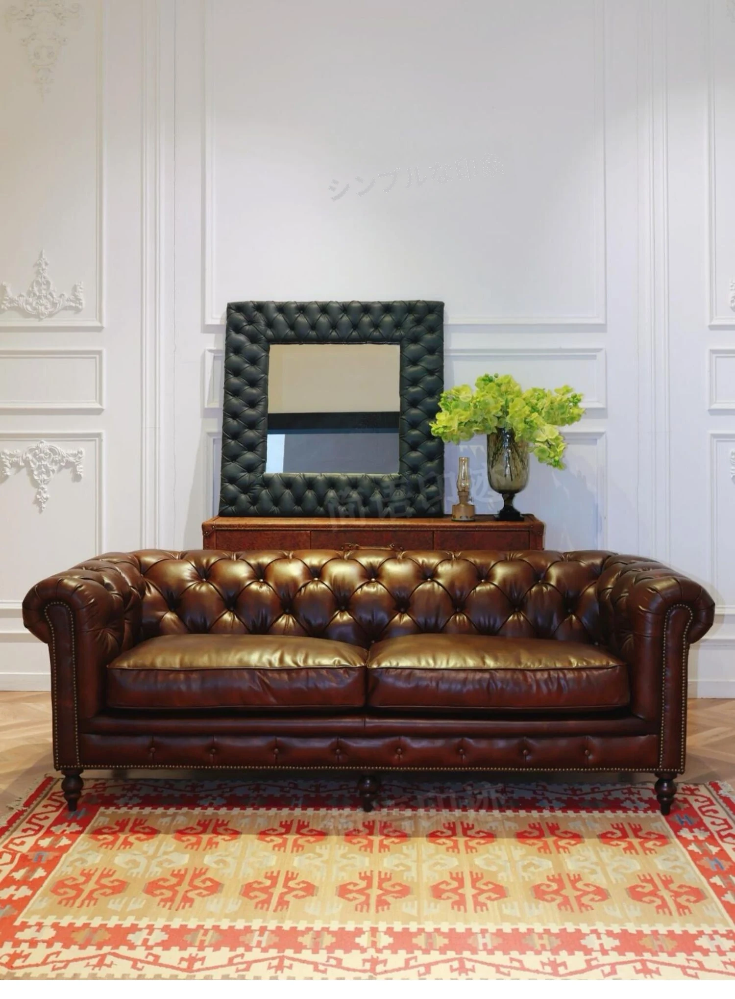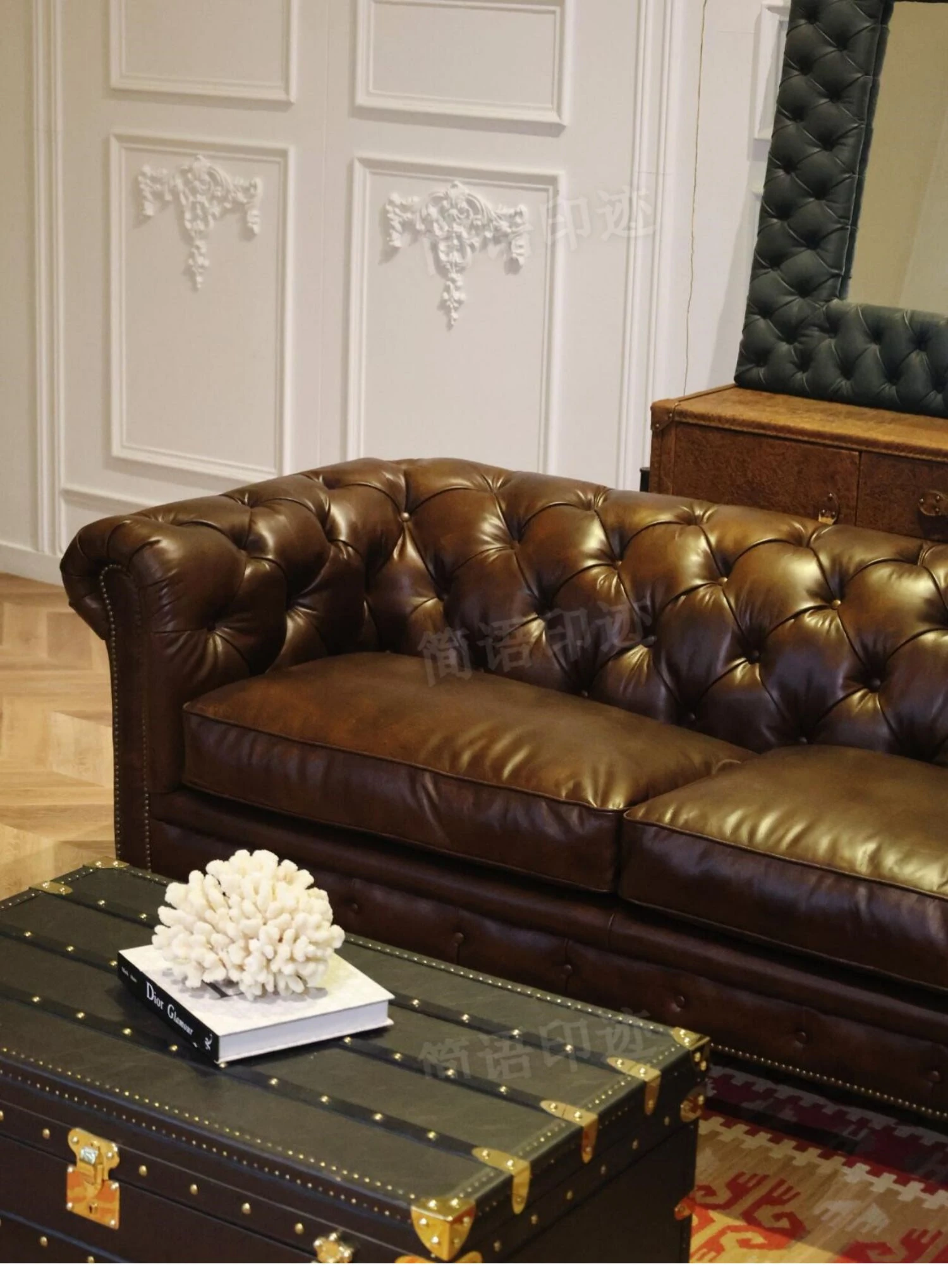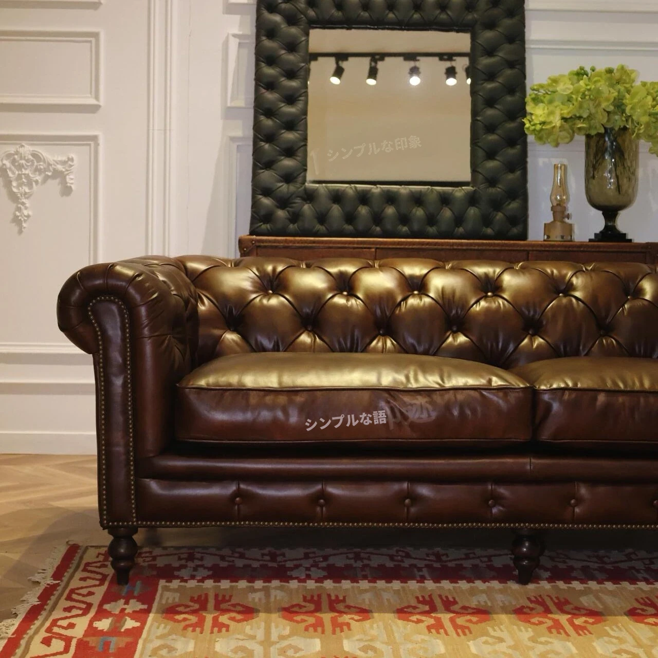 ヴィンテージ風ソファ アメリカンラグジュアリー本革ソファ リビングルームに最適なクラシックレトロオイルワックスレザー シガーバー付きラッチソファ