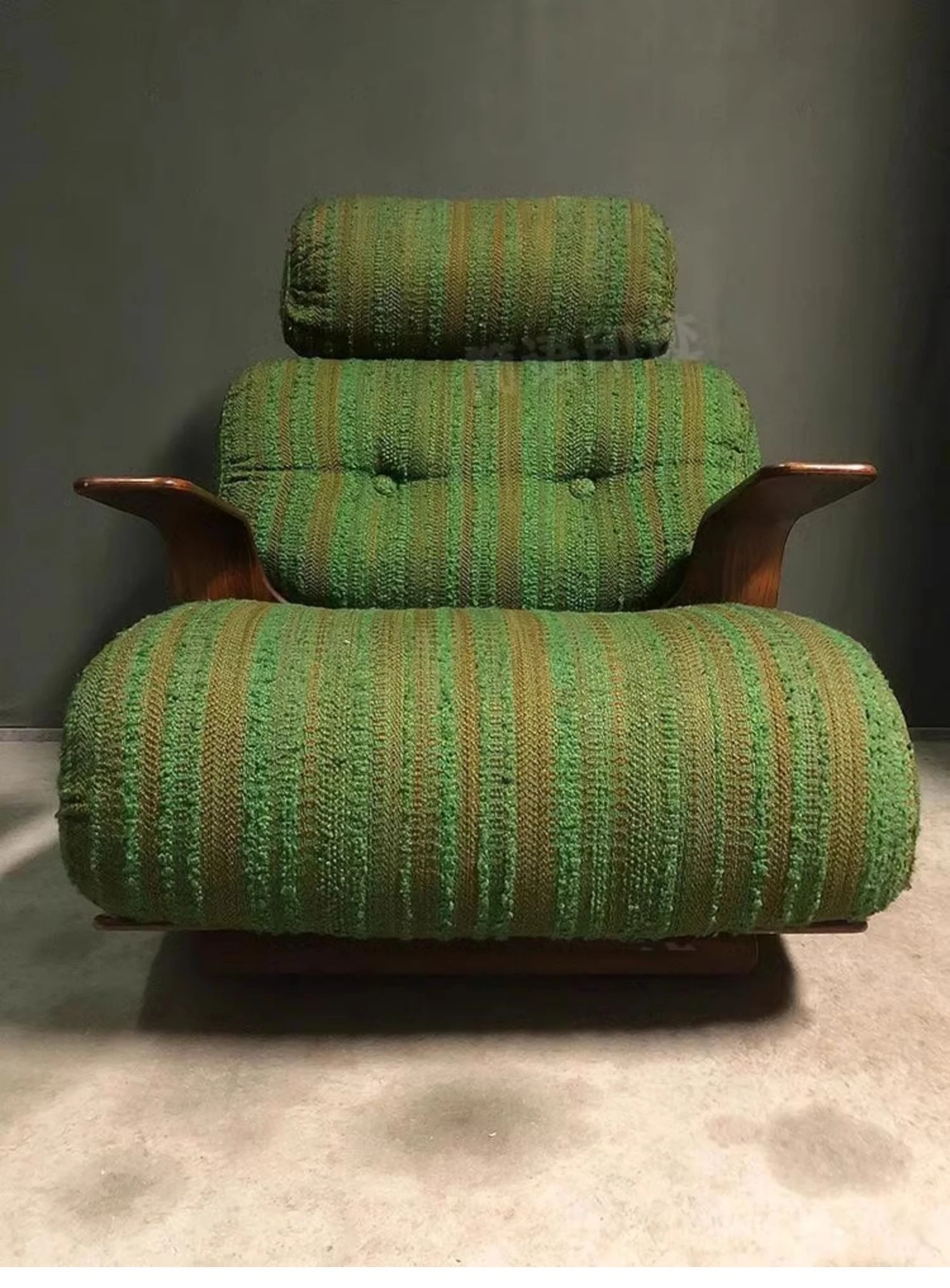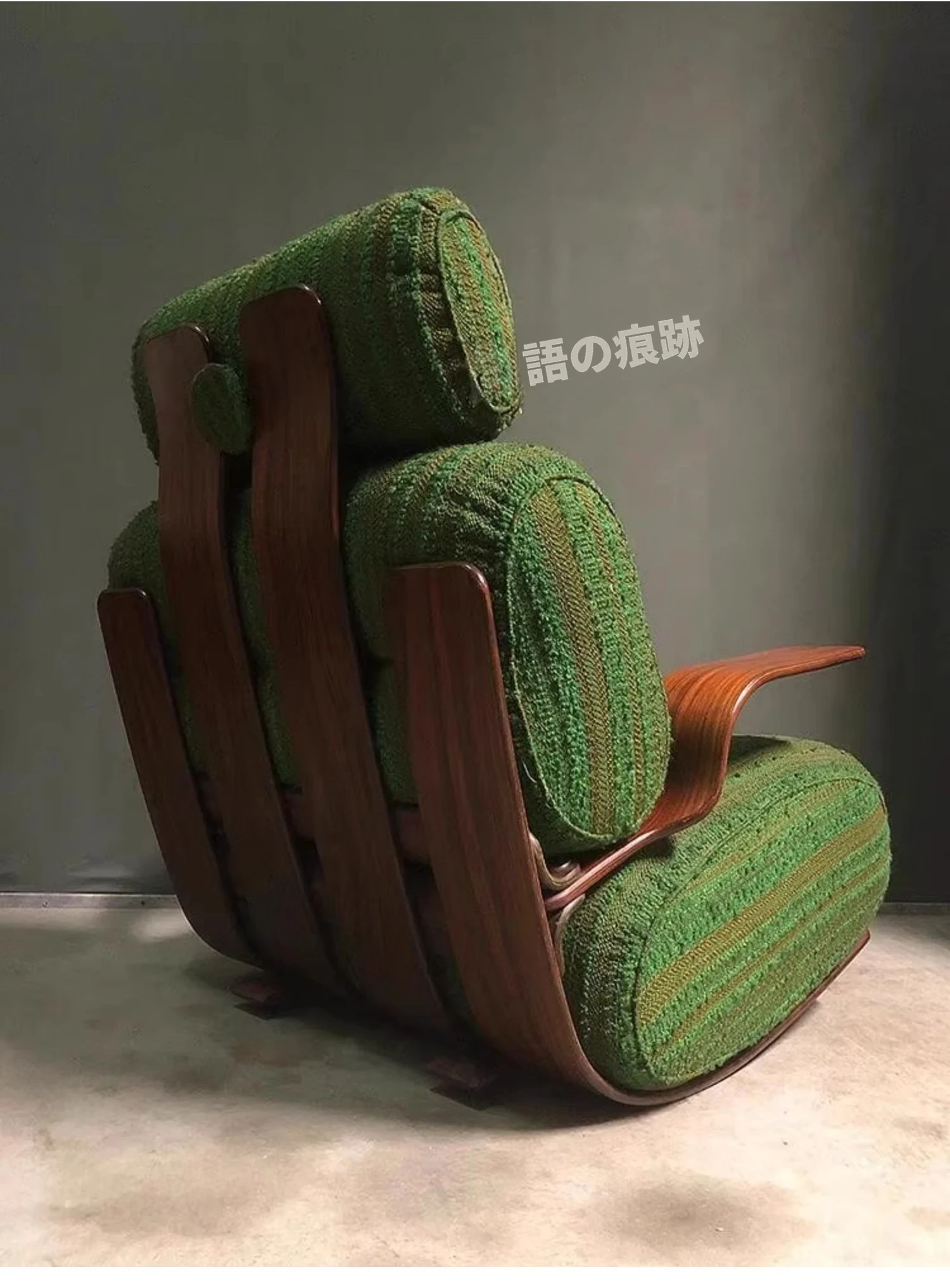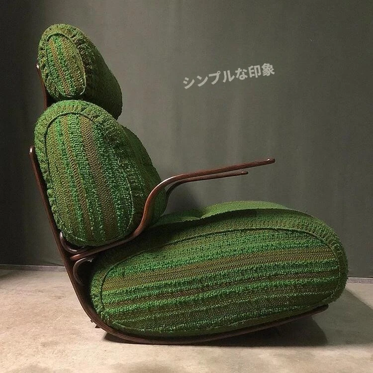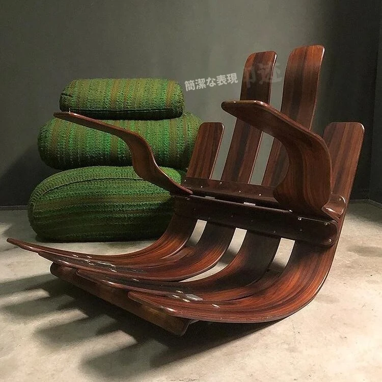 ヴィンテージ風デザインの機能的なソファチェア|デザイナーが手掛けた布製・無垢材のレトロな揺り椅子|リラックスできるラウンジチェア・快適なダイニングチェア|おしゃれでユニークなインテリアに最適!