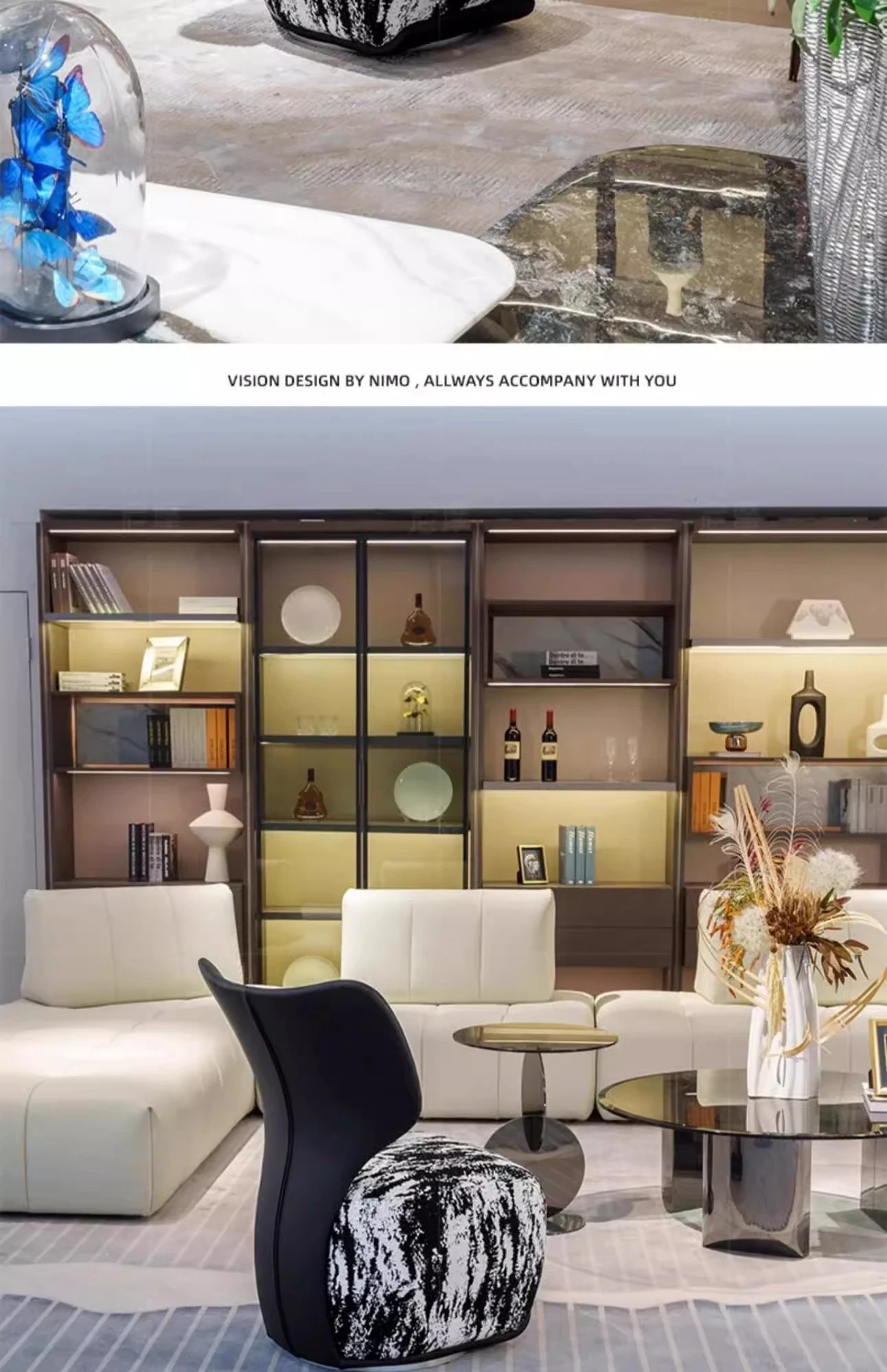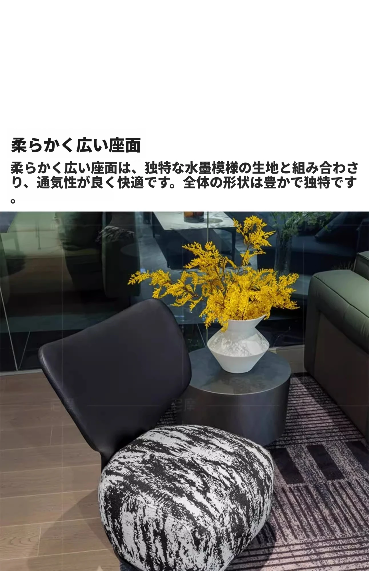 侘寂スタイルのリビングソファ・デザイナーチェア、寝室やバルコニーにも最適な回転式背もたれのリラックスチェア。水墨画のような美しさで、心地よいひとときを提供します。