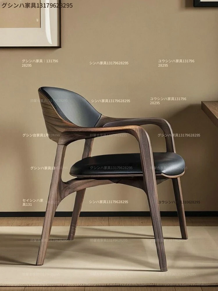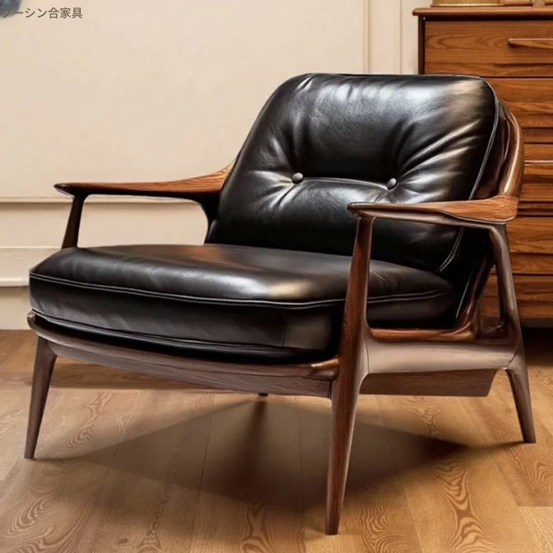 北米産ブラックウォルナットのモダンラグジュアリーな本革アームチェア - 高級感溢れるリビングや書斎に最適なデザイン、優雅なティーテーブルとの相性抜群!