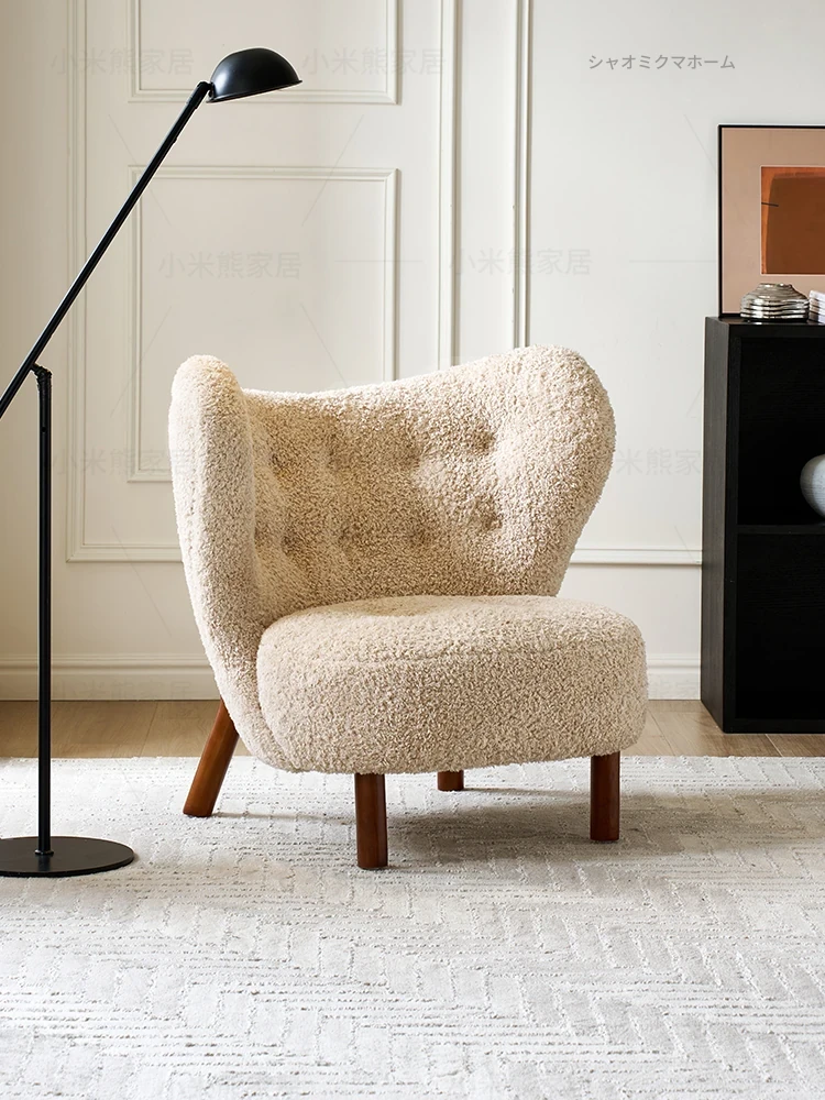 人気の北欧デンマーク羊毛チェア!リラックスできるモダンデザインの布製ソファチェア。クリーミーな風合いで、シンプルかつスタイリッシュな一人掛け椅子。あなたのリビングにぴったりのアクセントを!