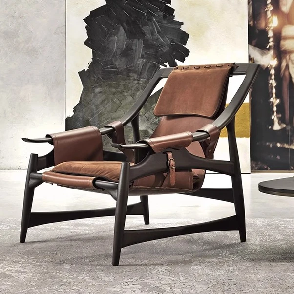 イタリアンミニマリズムの北米産ウォールナット無垢材使用!本革張りのリクライニング一人用ソファチェア。バルコニーでのリラックスタイムに最適なデザイン!