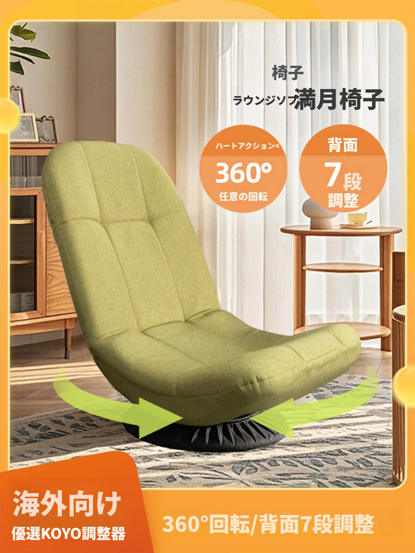 日本風の回転式リラックスソファチェア|折りたたみ可能な背もたれ付き|バルコニーや畳でくつろぐための理想的な月型チェア!快適な座り心地で、あなたのリラックスタイムを格上げします!