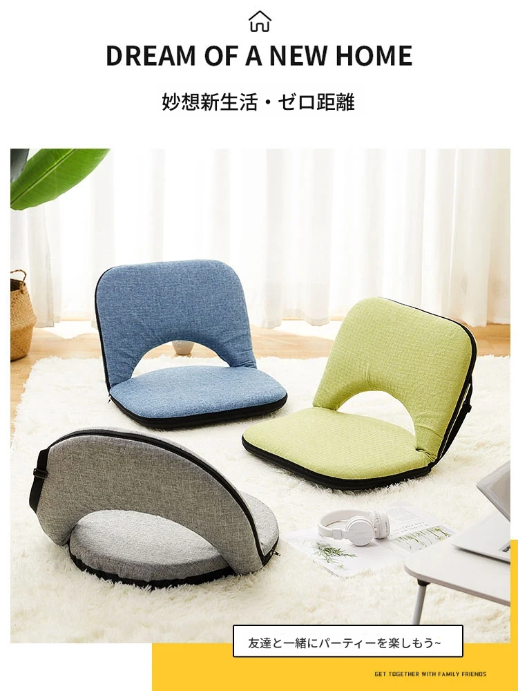 オリジナルのリラックスソファ!一人用、寝室やバルコニーにぴったりのフロアクッション。窓辺や畳の上でも使える折りたたみ式の快適な座椅子で、あなたのくつろぎ空間を演出します!